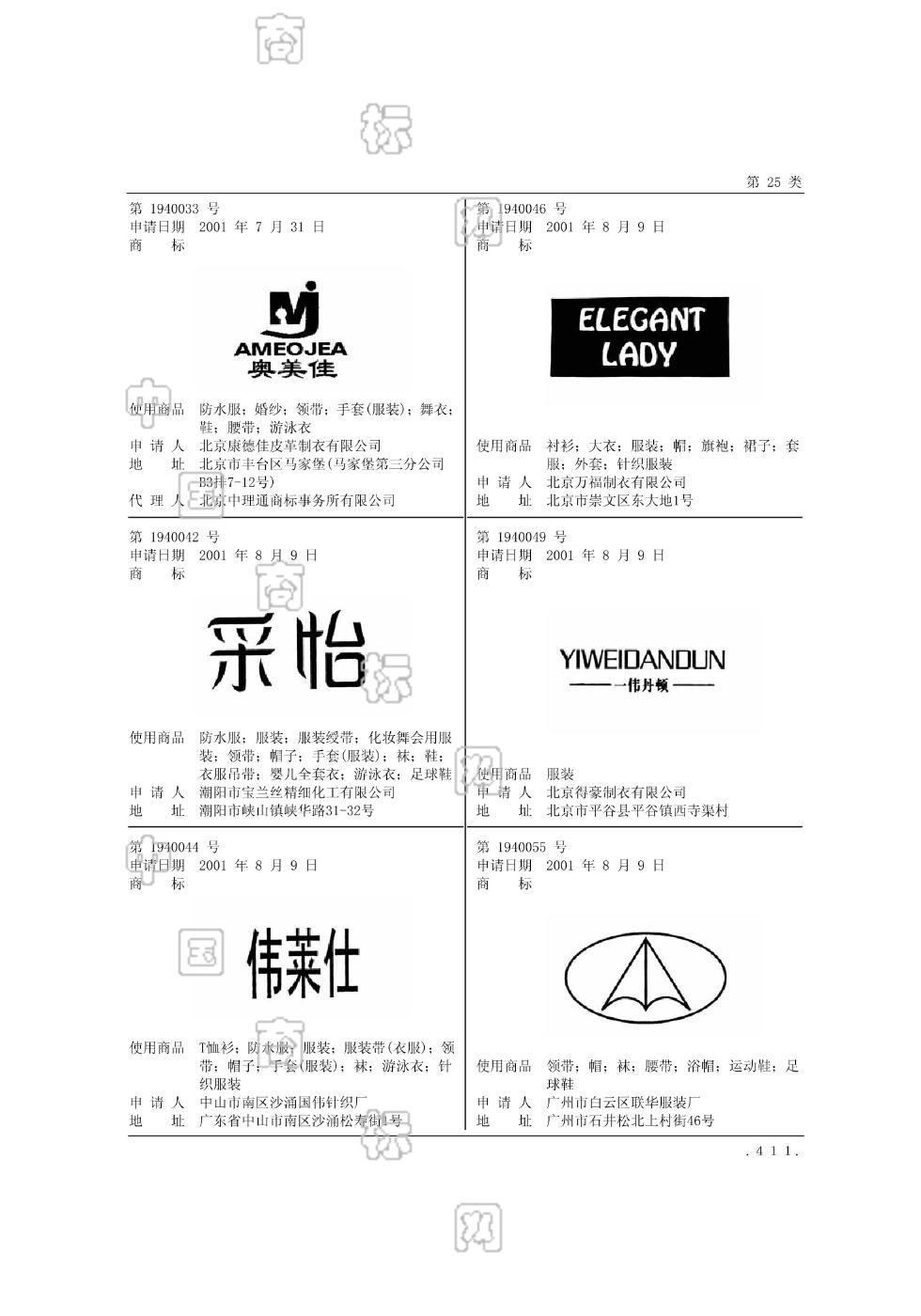 2501-服装;2502-婴儿全套衣;2503-游泳衣;2504-防水服;2505-化妆舞会用服装;2506-足球鞋;2507-鞋;2508-帽子;2509-袜;2510-手套(服装);2511-领带;2512-衣服吊带;2513-服装绶带 - 841