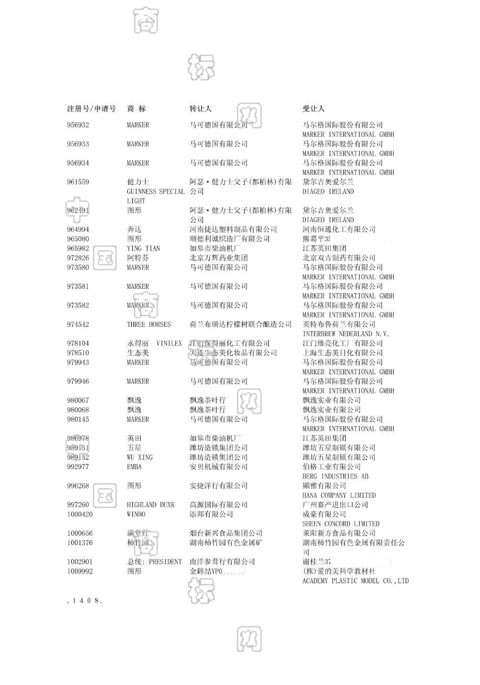 2004-01-09 冻结商标 | 冻结加注
