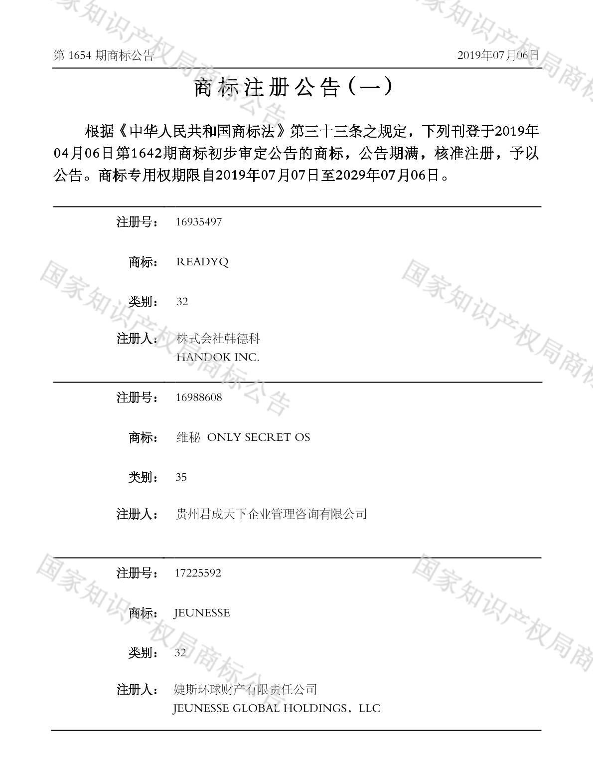 3201-啤酒;3202-乳清饮料;3202-无酒精果汁;3202-无酒精果汁饮料;3202-无酒精果茶;3202-无酒精饮料;3202-果汁;3202-等渗饮料;3203-饮料制作配料 - 1642