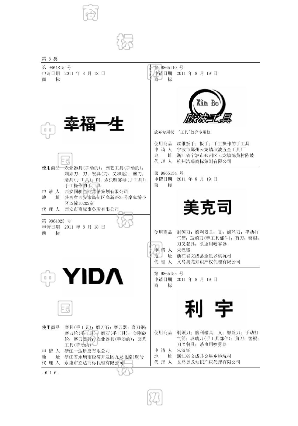 0801 , 0802 , 0803 , 0806 , 0807 , 0808 , 0809 , 0810 , 0811 , 0812 0801-磨利器具,