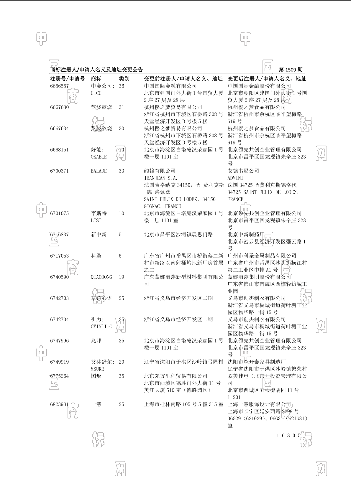2015-10-10 变更商标申请人/注册人名义/地址 | 申请收文