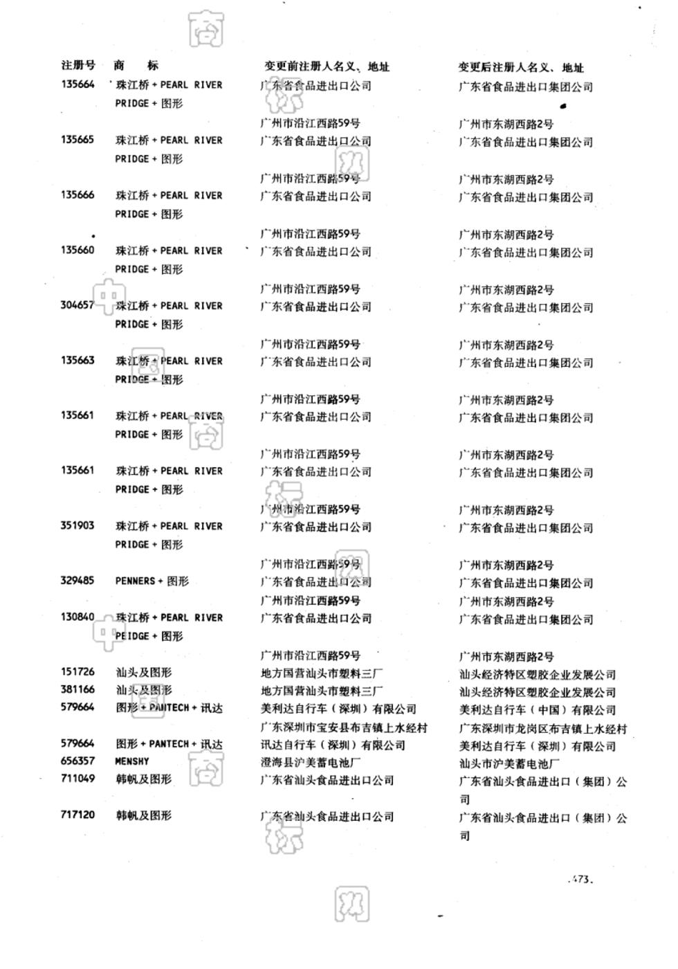 商标注册人申请人名义及地址变更公告 1996-01-07 第526期 查看公告