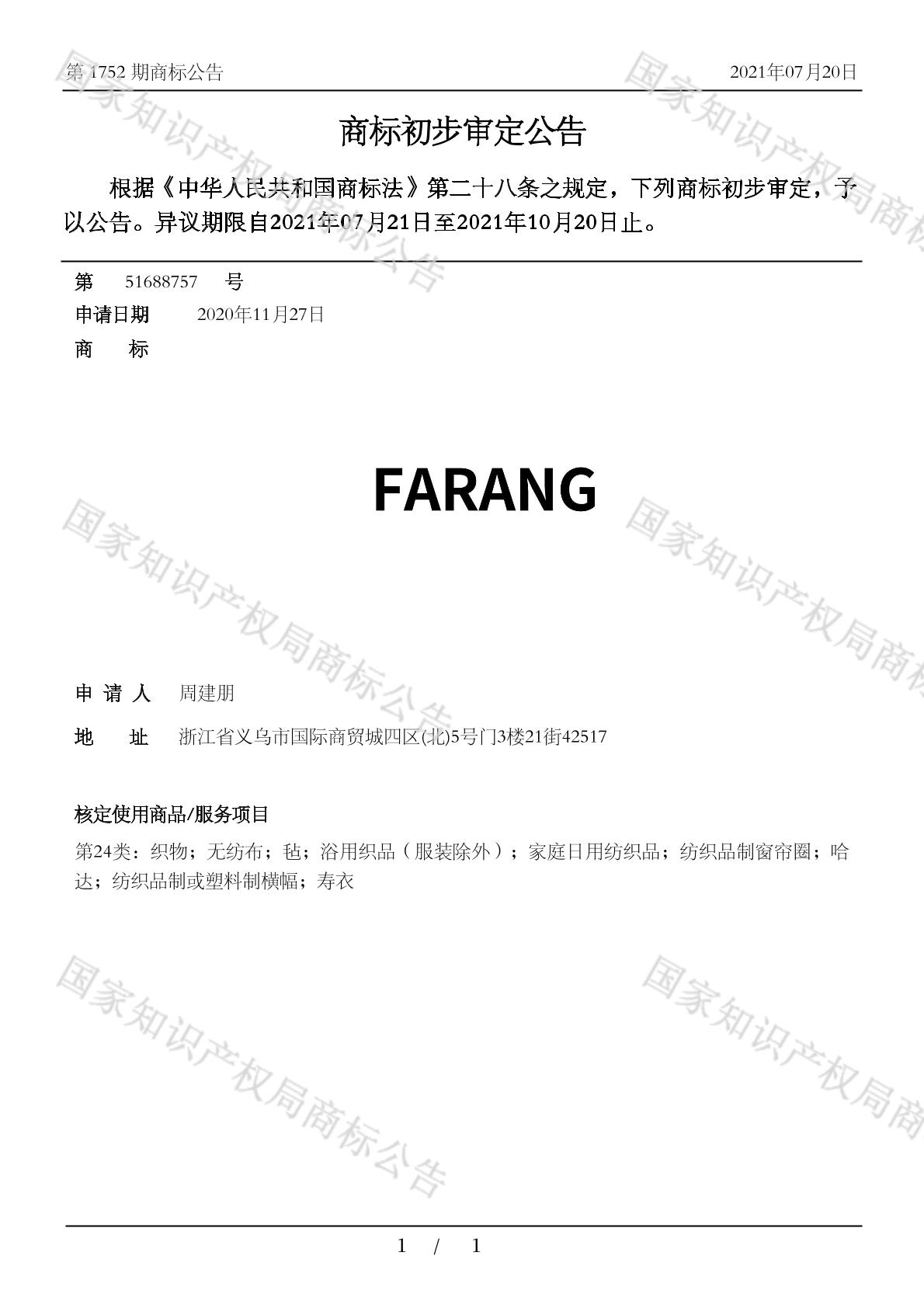 2401-织物;2402-无纺布;2403-纺织品制壁挂;2404-毡;2405-家庭日用纺织品;2405-浴用织品(服装除外);2406-家庭日用纺织品;2407-家庭日用纺织品;2407-纺织品制窗帘圈;2409-哈达;2410-纺织品制或塑料制横幅;2411-寿衣 - 1752
