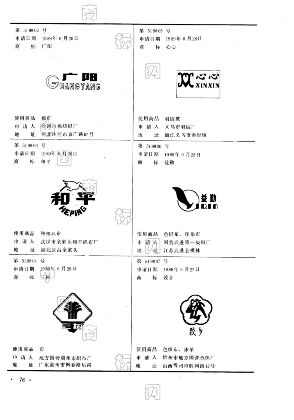 1989-06-26 商标注册申请 | 申请收文
