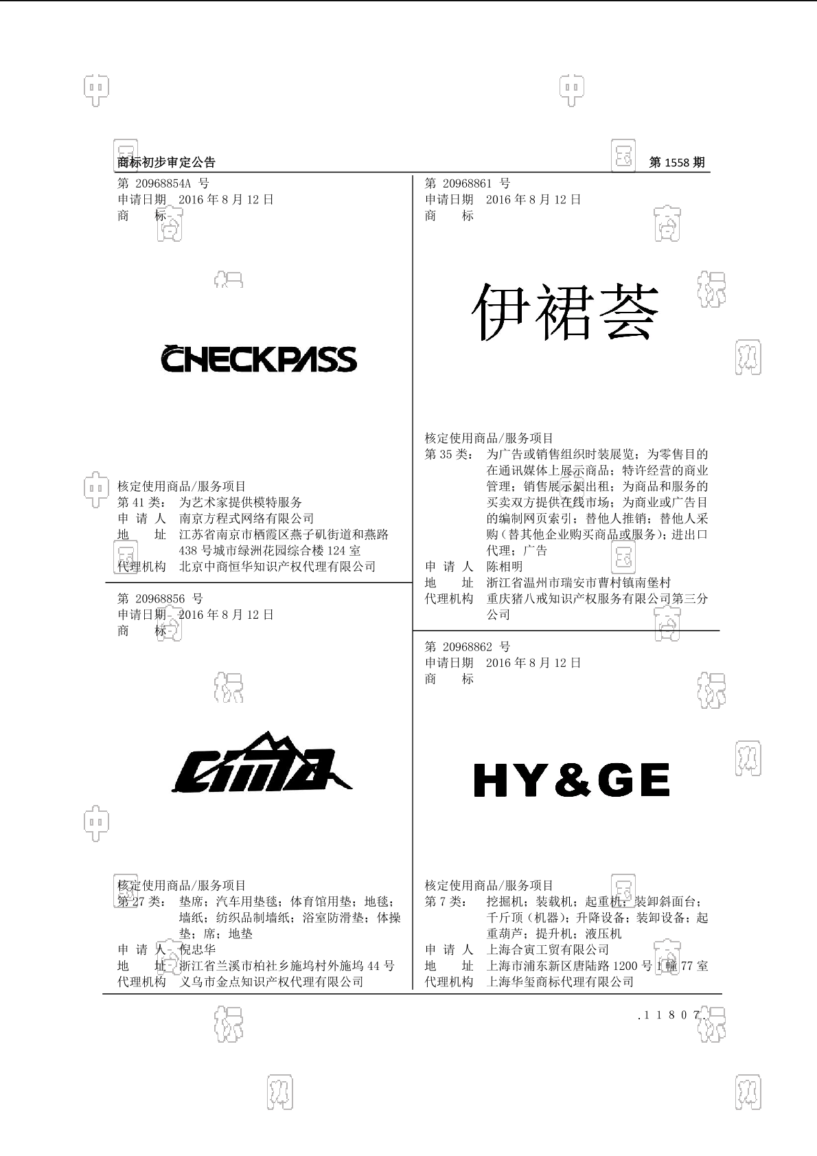 2017-11-15 商标注册申请 | 注册证发文