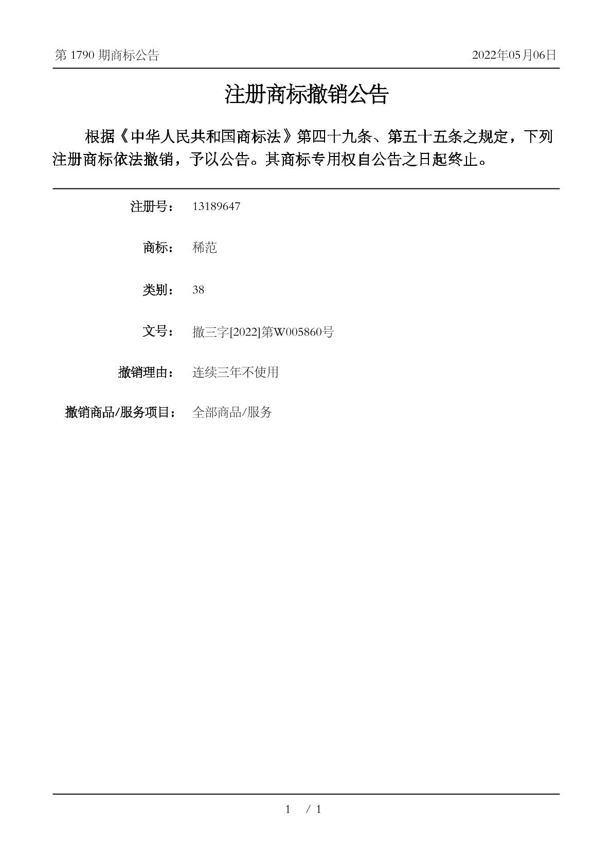 2022-02-17 撤销连续三年停止使用注册商标 | 撤销商标通知发文
