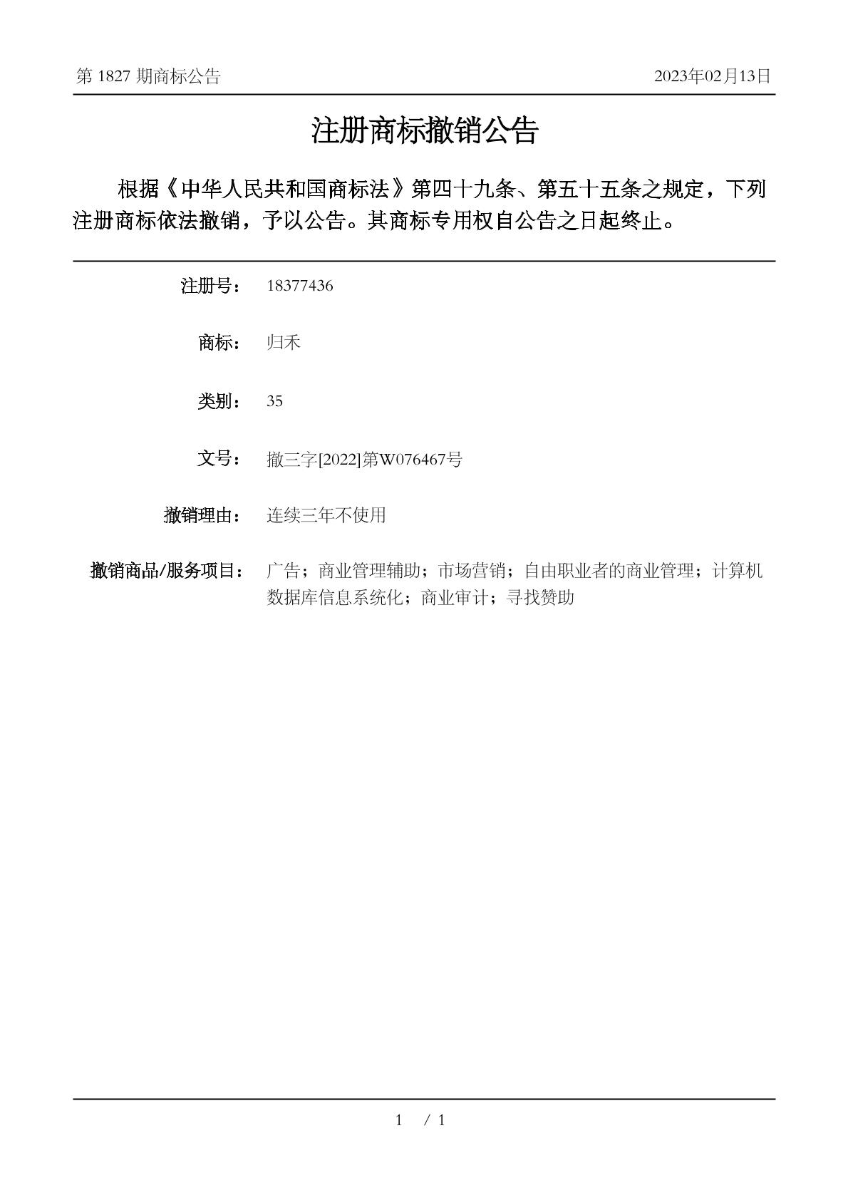 2023-03-27 撤销连续三年停止使用注册商标 | 有退信