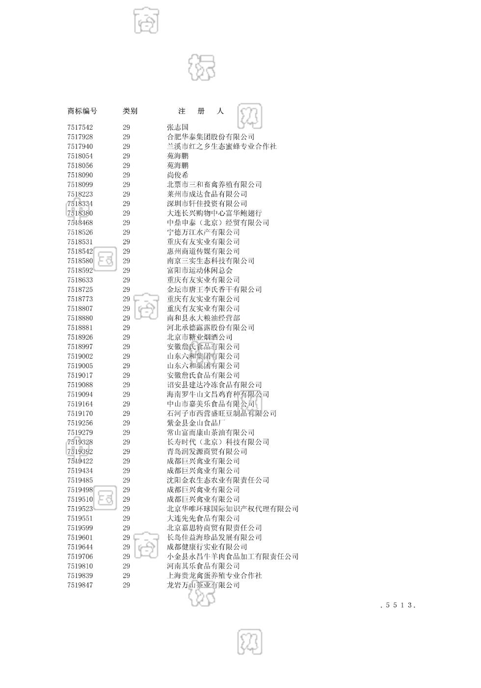 2901-肉;2902-鱼制食品;2904-水果蜜饯;2905-腌制蔬菜;2906-蛋;2907-牛奶制品;2908-食用油;2909-水果色拉;2911-精制坚果仁;2912-干食用菌 - 1226