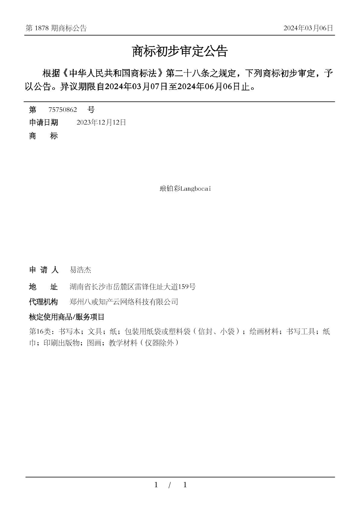 1601-纸;1603-纸巾;1605-书写本;1606-印刷出版物;1607-图画;1609-包装用纸袋或塑料袋(信封、小袋);1611-文具;1614-书写工具;1617-绘画材料;1619-教学材料(仪器除外) - 1878