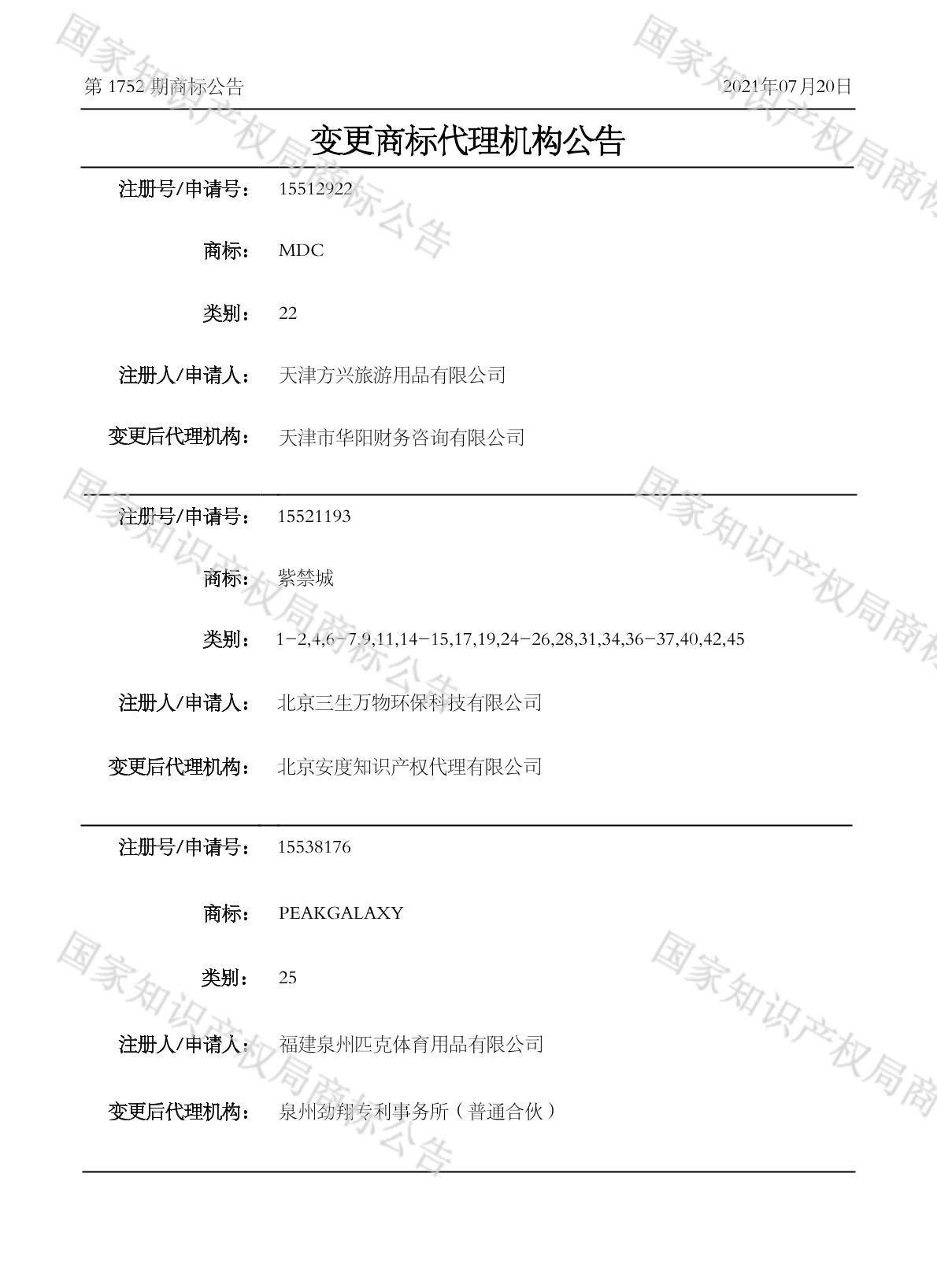 变更商标代理机构公告 2021-07-20 第1752期 查看公告