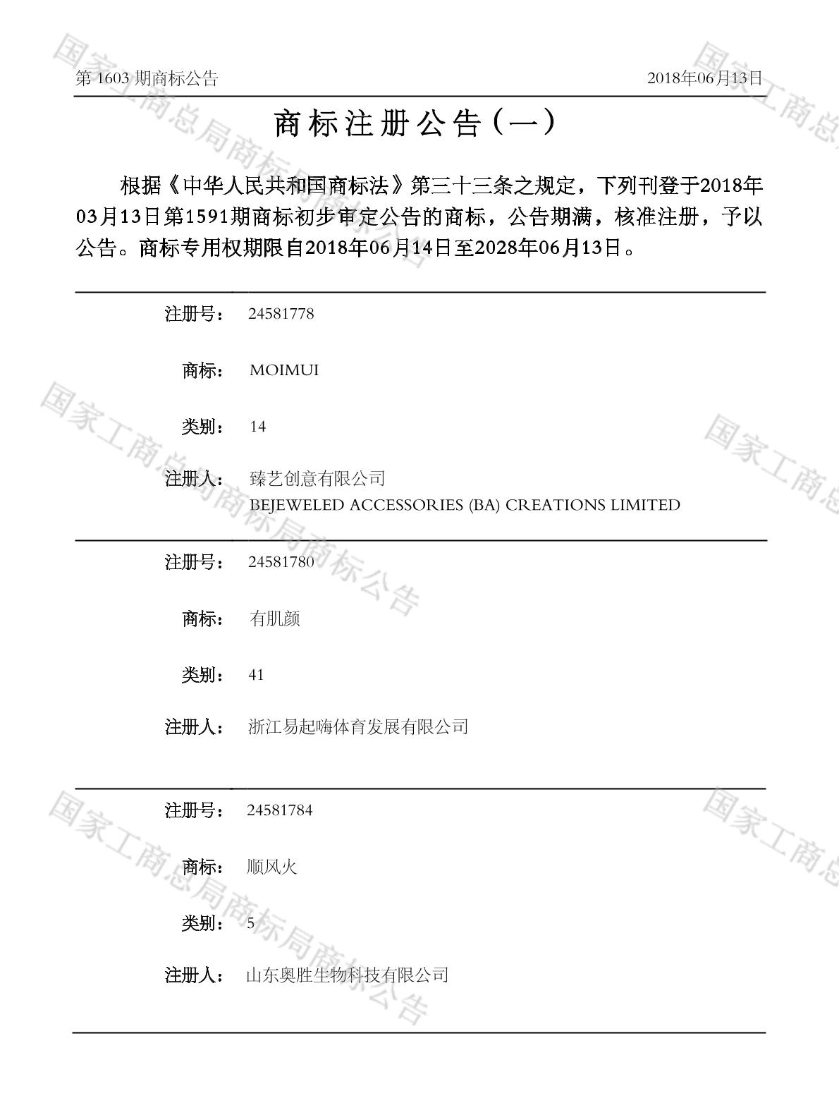 2018-07-11 商标注册申请 | 注册证发文