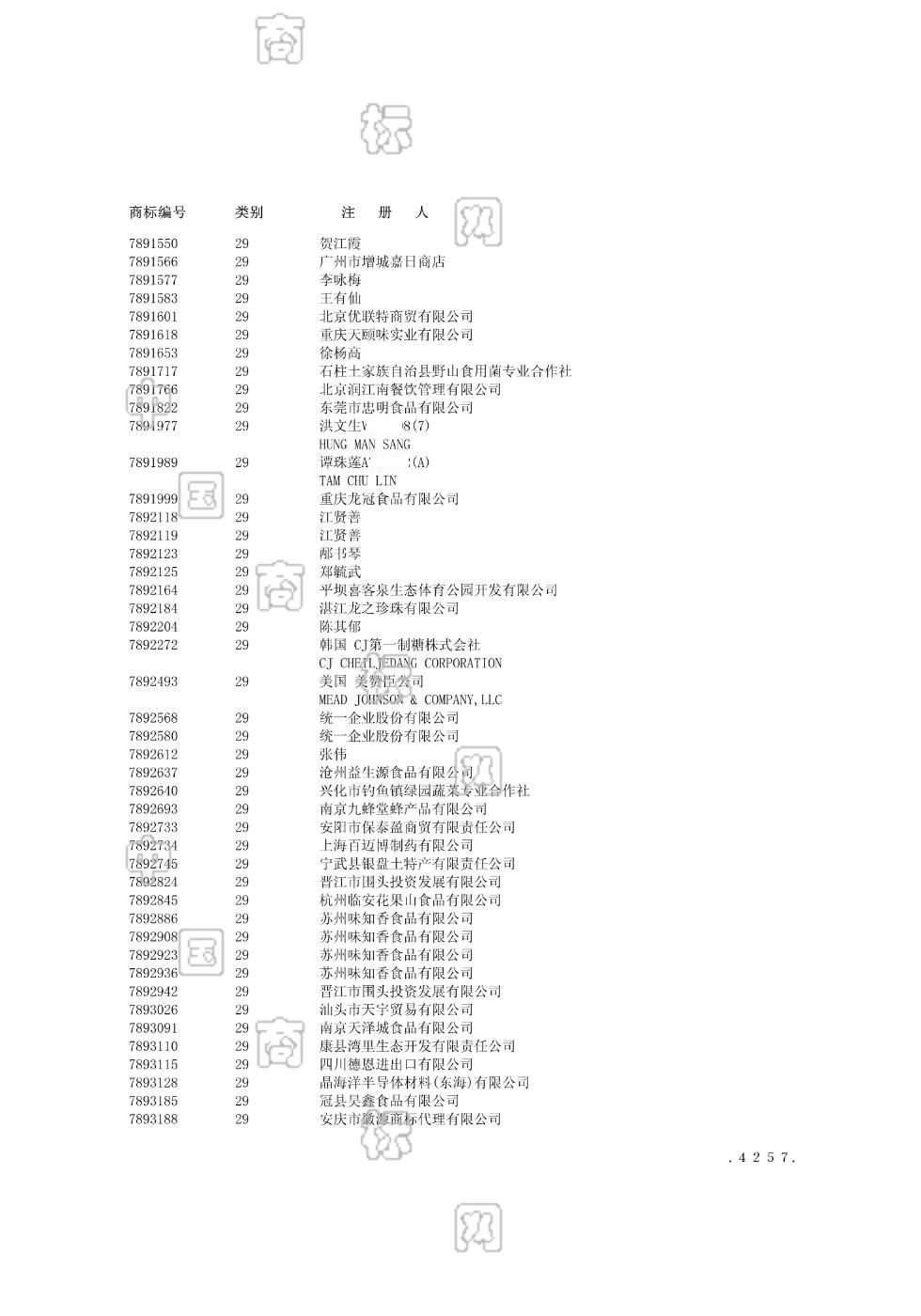 2901-肉;2902-鱼制食品;2903-罐装水果;2904-以果蔬为 主的零食小吃;2905-速冻方便菜肴;2906-蛋;2908-食用油;2909-蔬菜色拉;2912-干食用菌;2913-豆腐 - 1243
