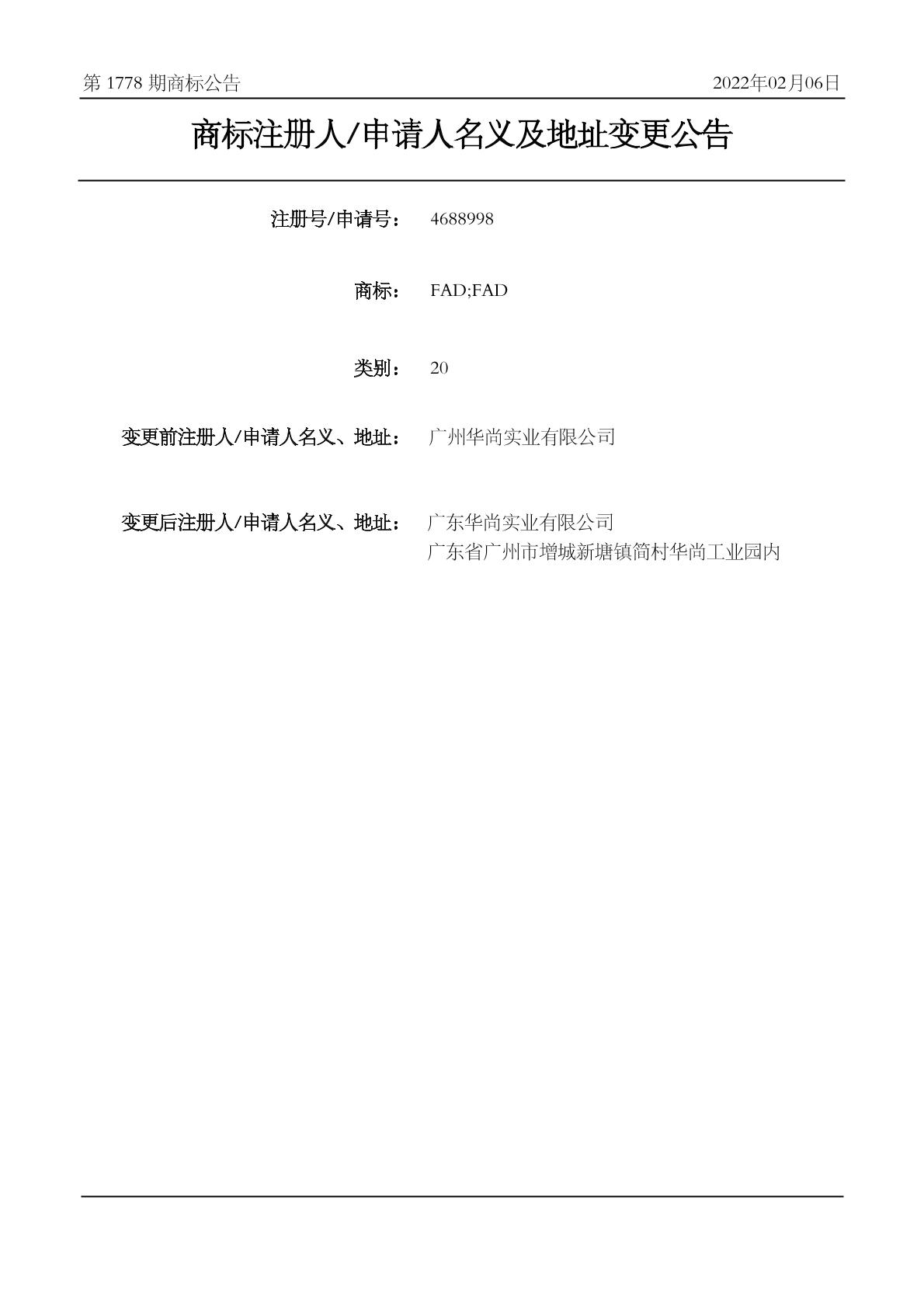 2022-01-28 变更商标申请人/注册人名义/地址 | 核准证明打印发送