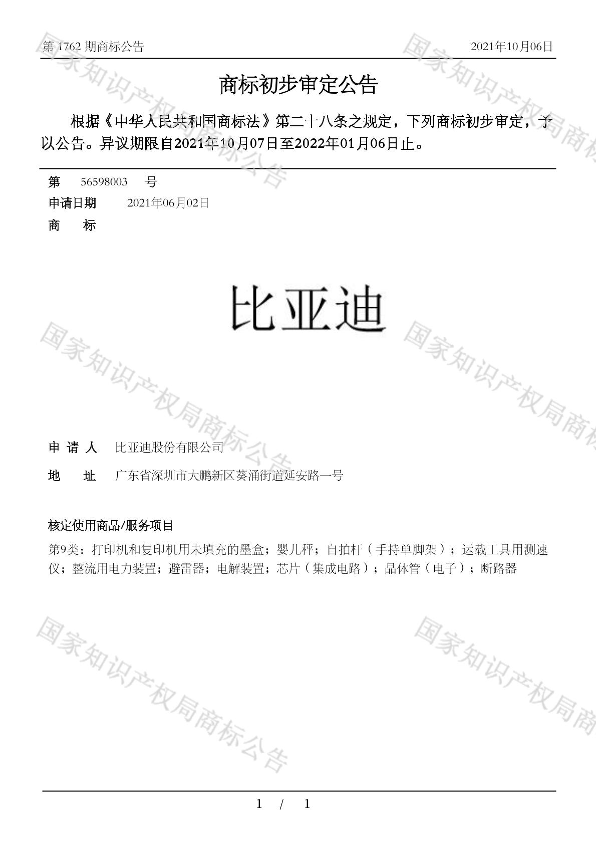 0901-打印机和复印机用未填充的墨盒;0903-打印机和复印机用未填充的墨盒;0904-婴儿秤;0909-自拍杆(手持单脚架);0910-运载工具用测速仪;0913-断路器;0913-晶体管(电子);0913-芯片(集成电路);0914-整流用电力装置;0914-避雷器;0915-电解装置 - 1762
