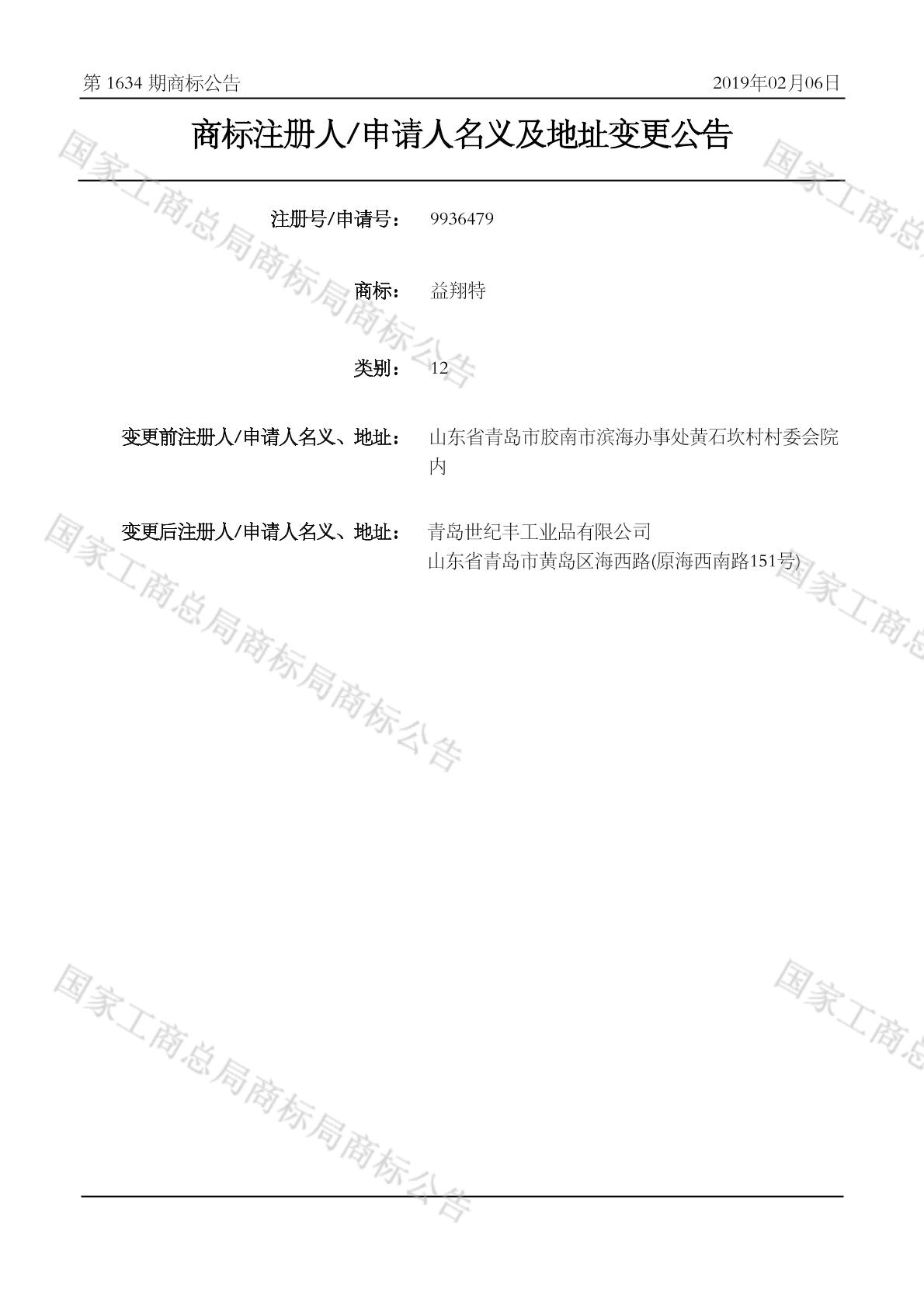 2019-01-19 变更商标申请人/注册人名义/地址 | 核准证明打印发送