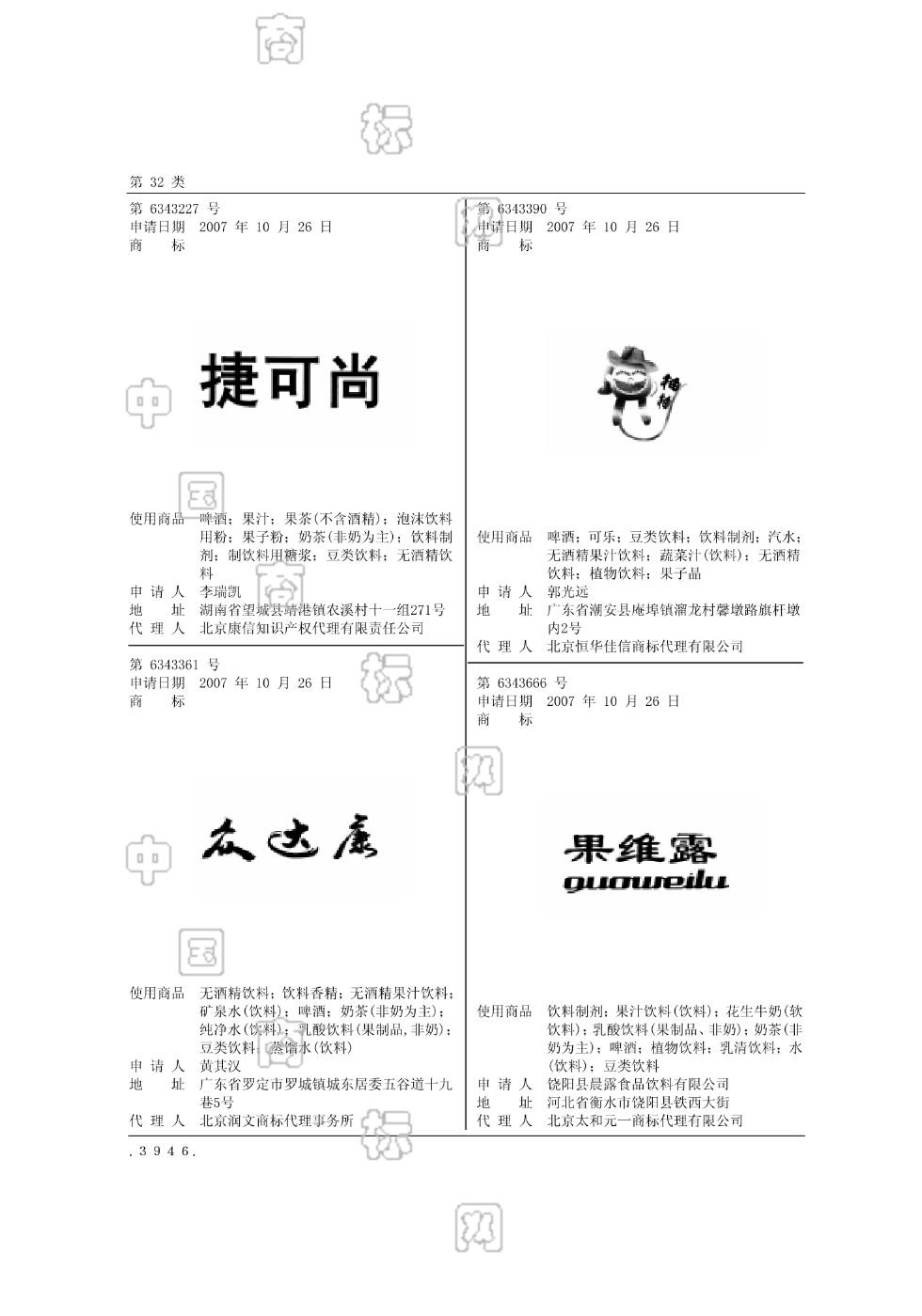 3201-啤酒;3202-可乐;3202-无酒精果汁饮料;3202-无酒精饮料;3202-果子晶;3202-植物饮料;3202-汽水;3202-蔬菜汁(饮料);3202-豆类饮料;3203-饮料制剂 - 1192