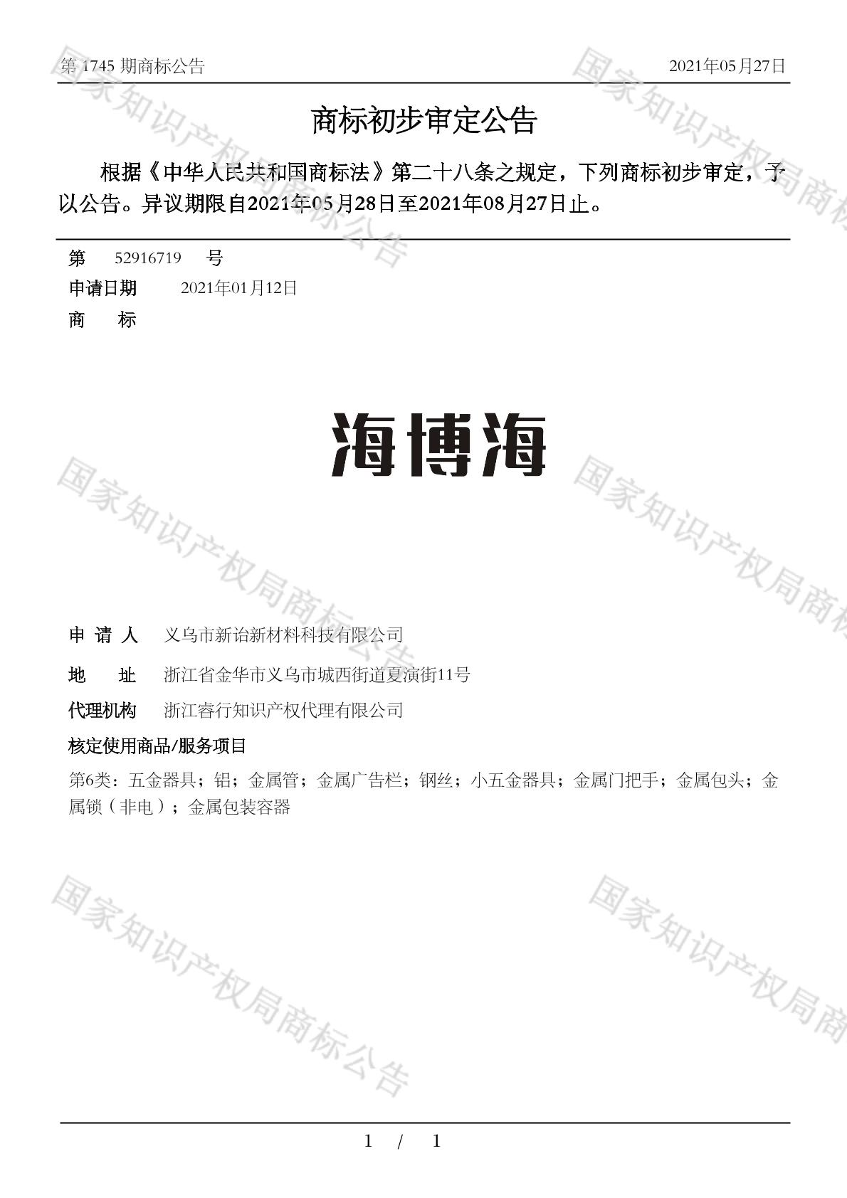 0601-铝;0602-金属管;0603-金属广告栏;0605-钢丝;0607-五金器具;0607-小五金器具;0608-五金器具;0608-小五金器具;0608-金属门把手;0609-五金器具;0609-小五金器具;0609-金属包头;0610-金属锁(非电);0613-金属包装容器 - 1745