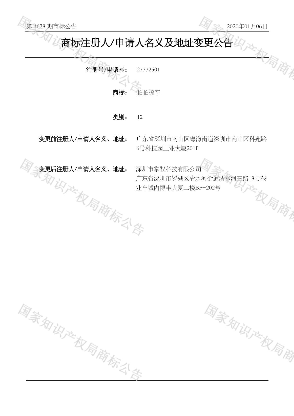 2019-12-24 变更商标申请人/注册人名 义/地址 | 核准证明打印发送