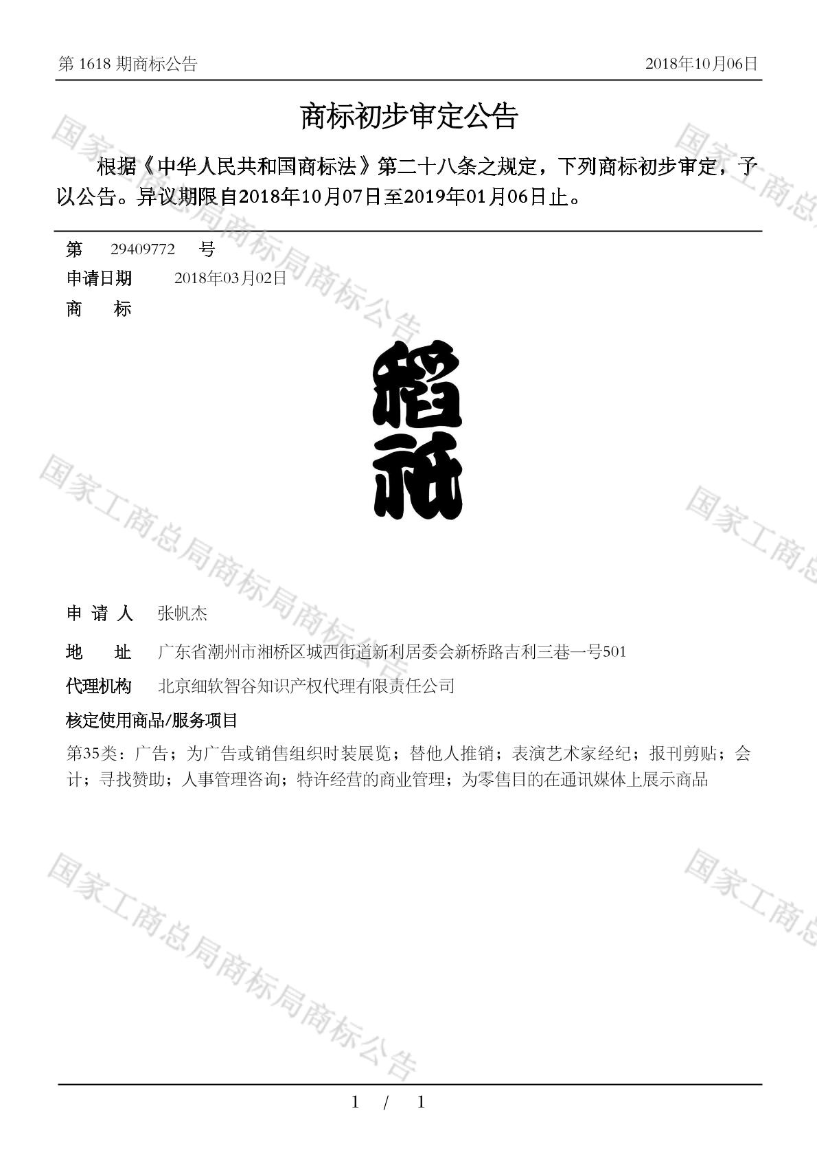 3501-为零售目的在通讯媒体上展示商品;3501-广告;3502-为广告或销售组织时装展览;3502-特许经营的商业管理;3503-替他人推销;3504-人事管理咨询;3504-表演艺术家经纪;3506-报刊剪贴;3507-会计;3508-寻找赞助 - 1618