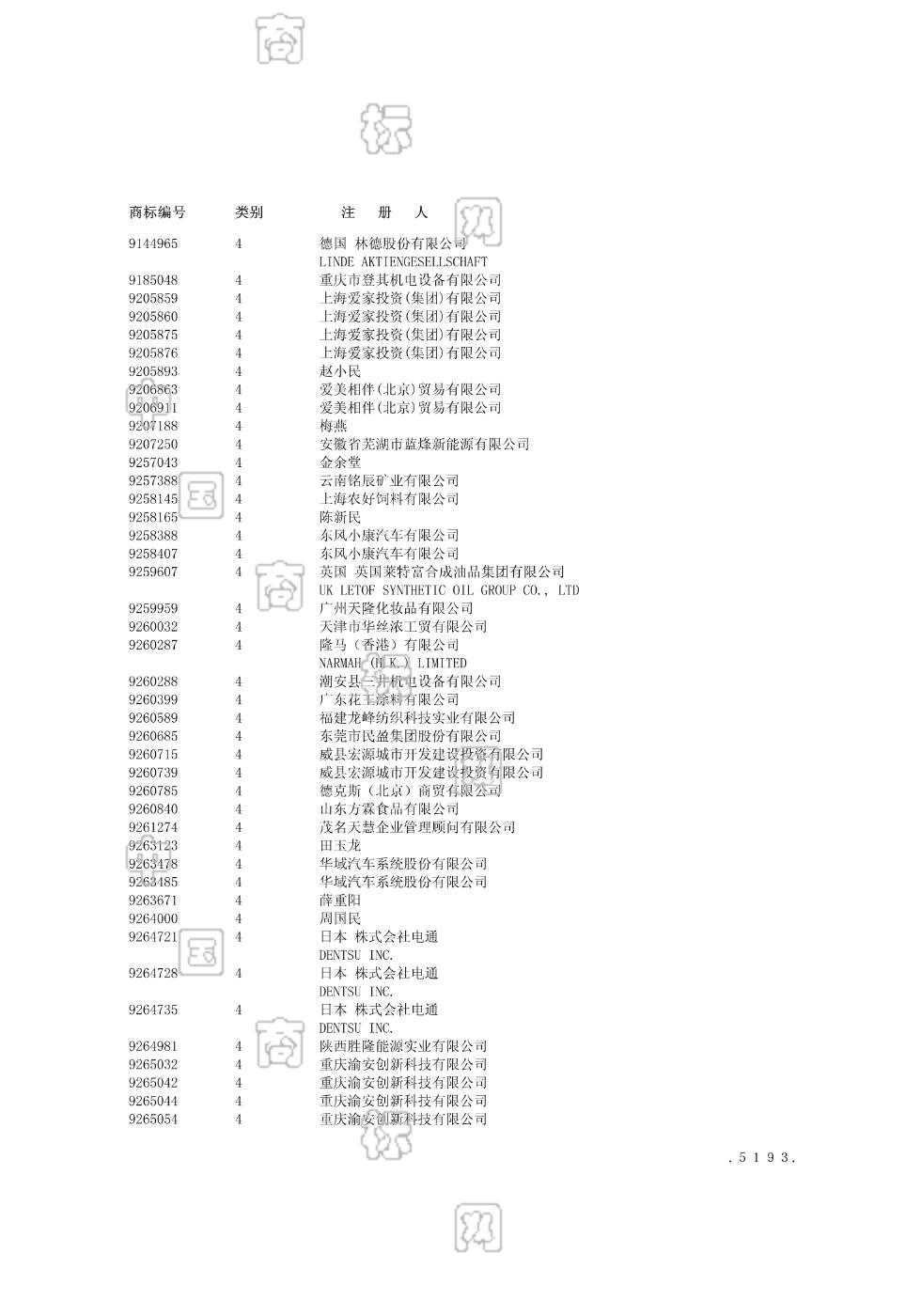 0401-发动机油;0401-工业用 油;0401-润滑油;0401-齿轮油;0402-汽油(挥发油);0402-石油气;0403-引火剂;0404-工业用蜡;0405-圣诞树蜡烛;0406-除尘制剂 - 1294
