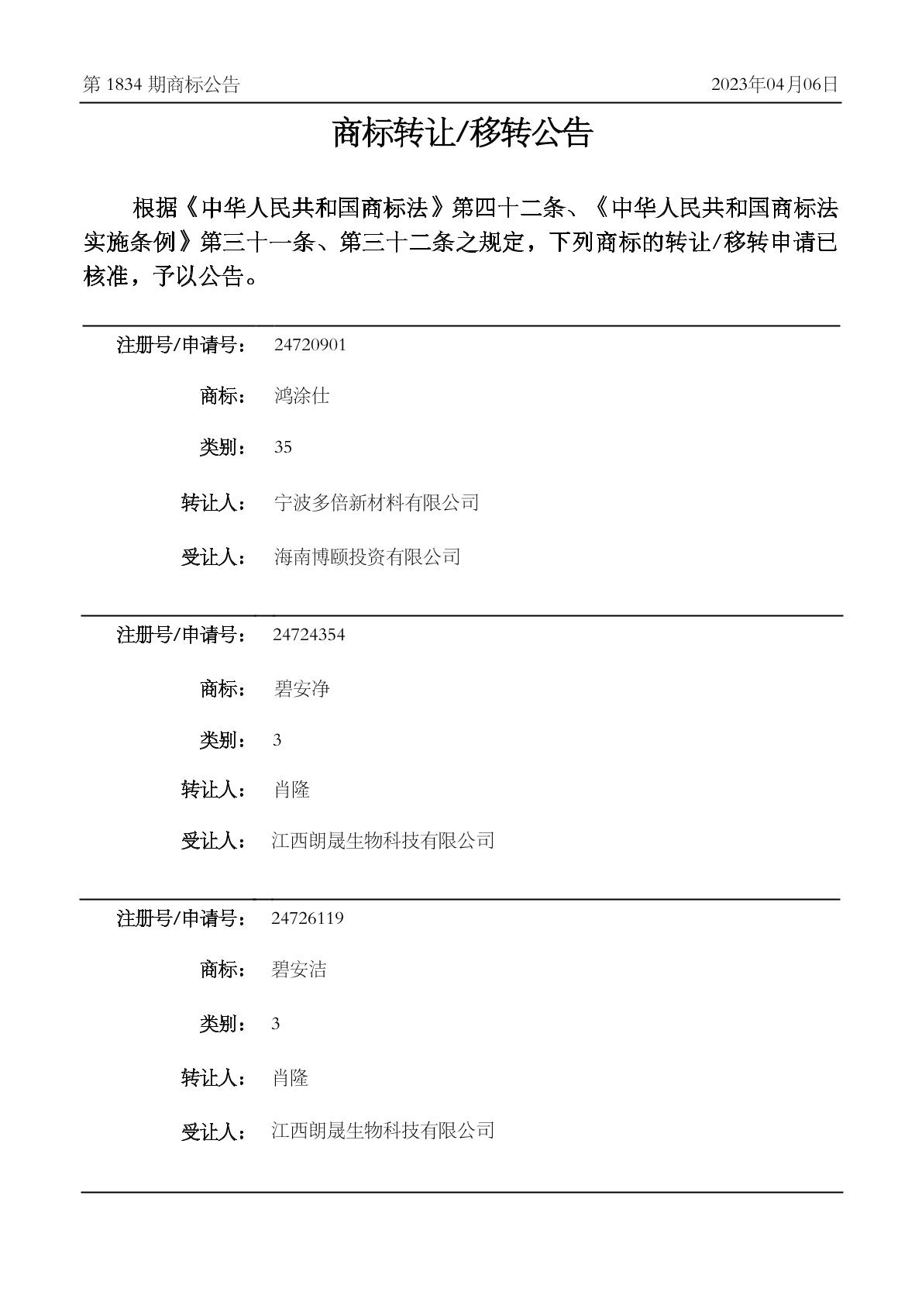 2023-04-12 商标转让 | 核准证明打印发送