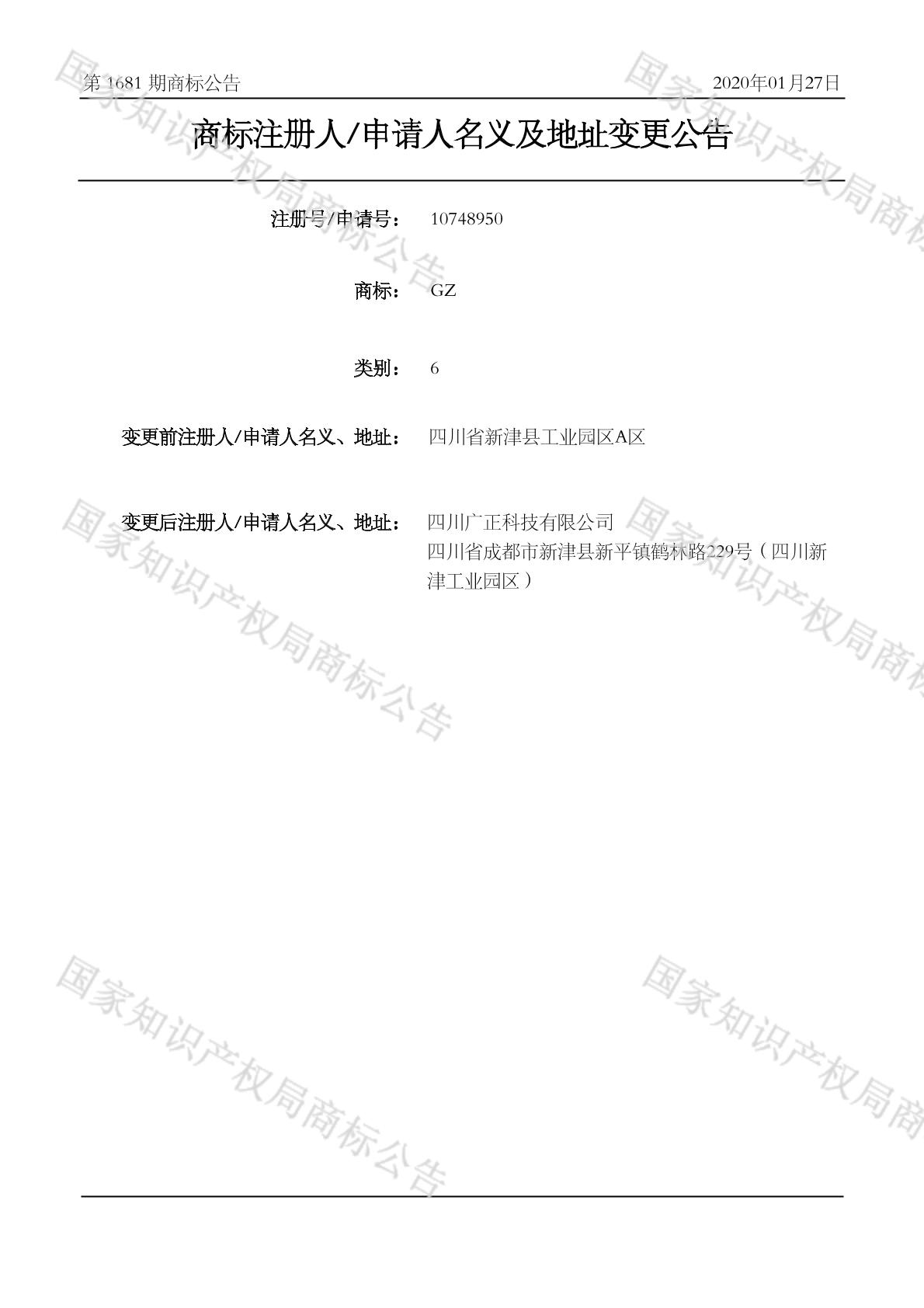 2020-01-13 变更商标申请人/注册人名义/地址 | 核准证明打印发送