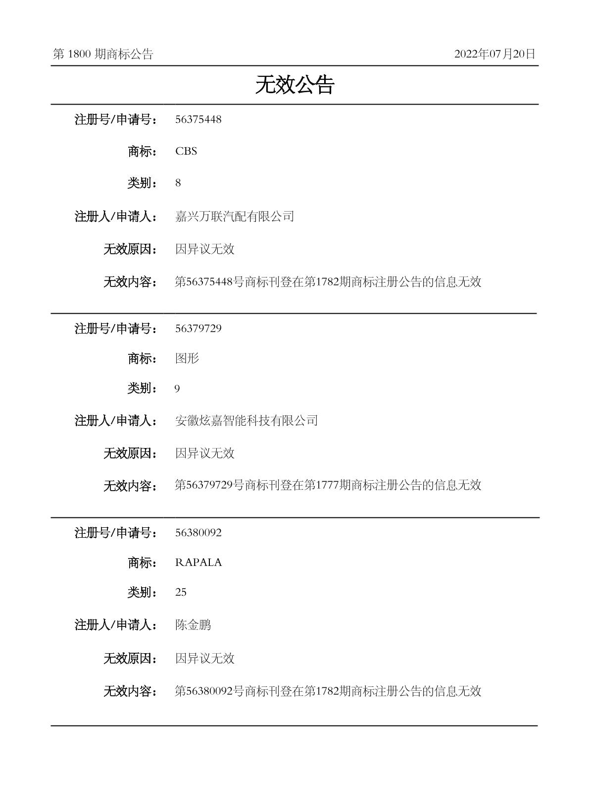 2022-07-15 商标异议申请 | 受理通知发文