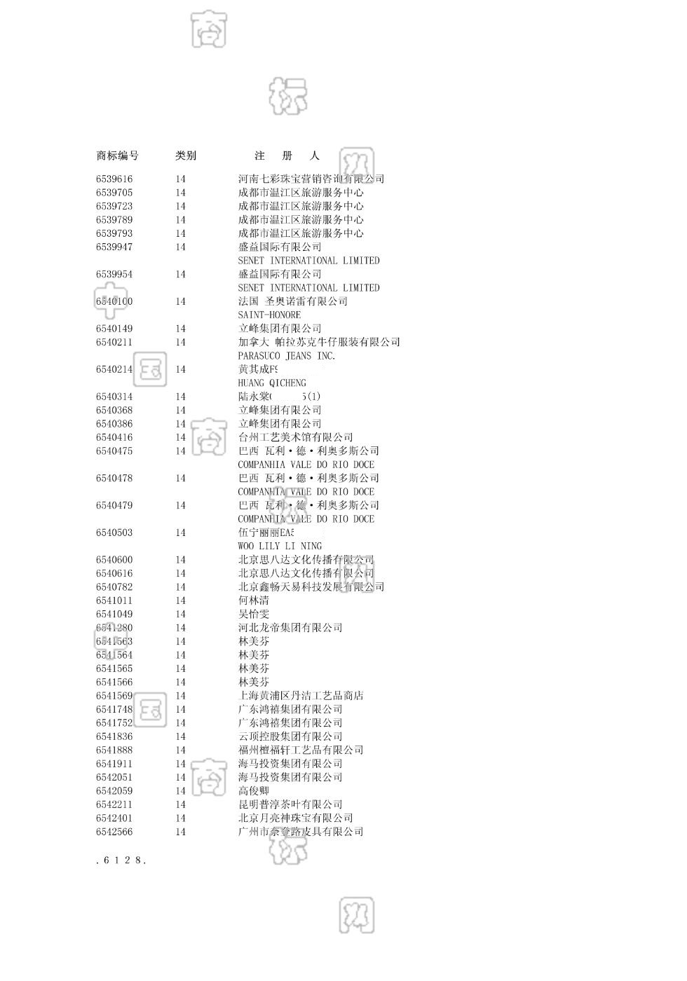 1401-未加工或半加工贵重金属;1401-贵重金属合金;1403-宝石;1403-玉雕;1403-珍珠(珠宝);1403-角、骨、牙、介首饰及艺术品;1403-金刚石;1404-精密计时器;1404-计时器(手表);1404-钟 - 1197