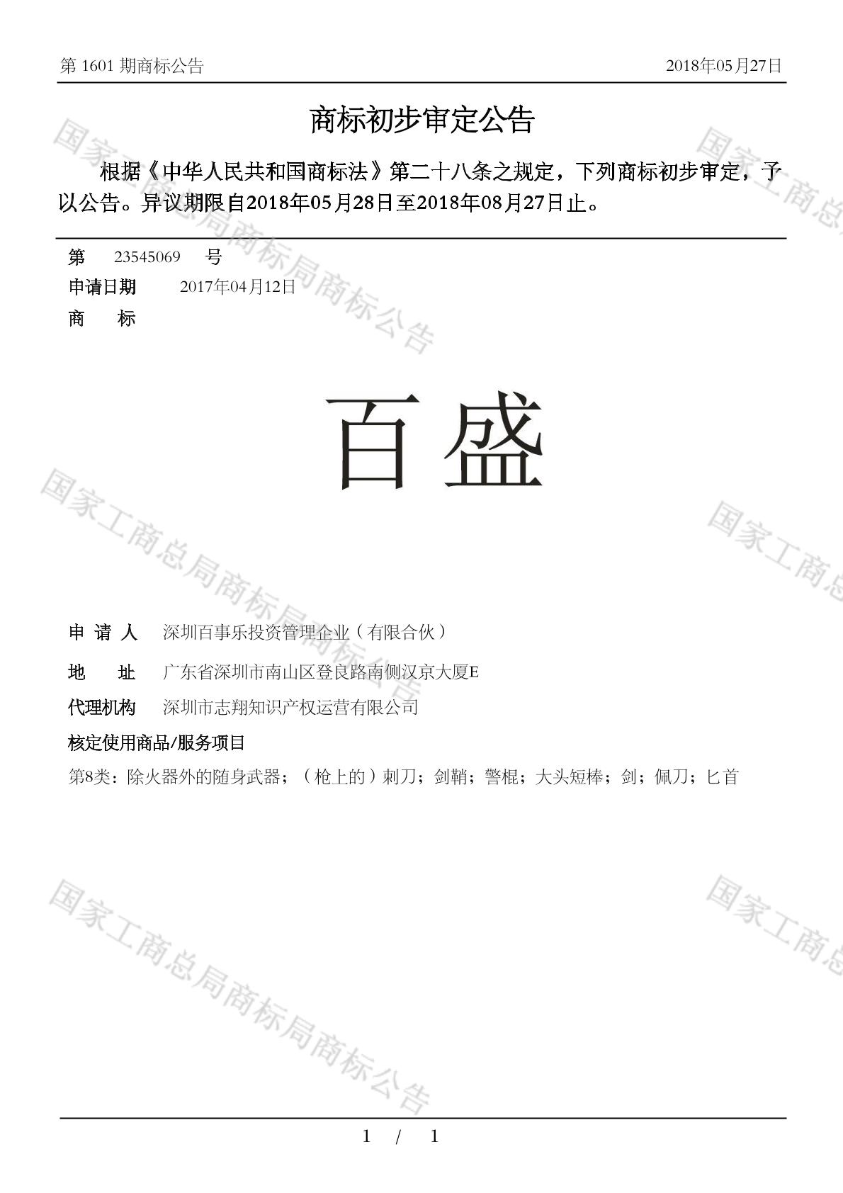 【百盛】商标详情