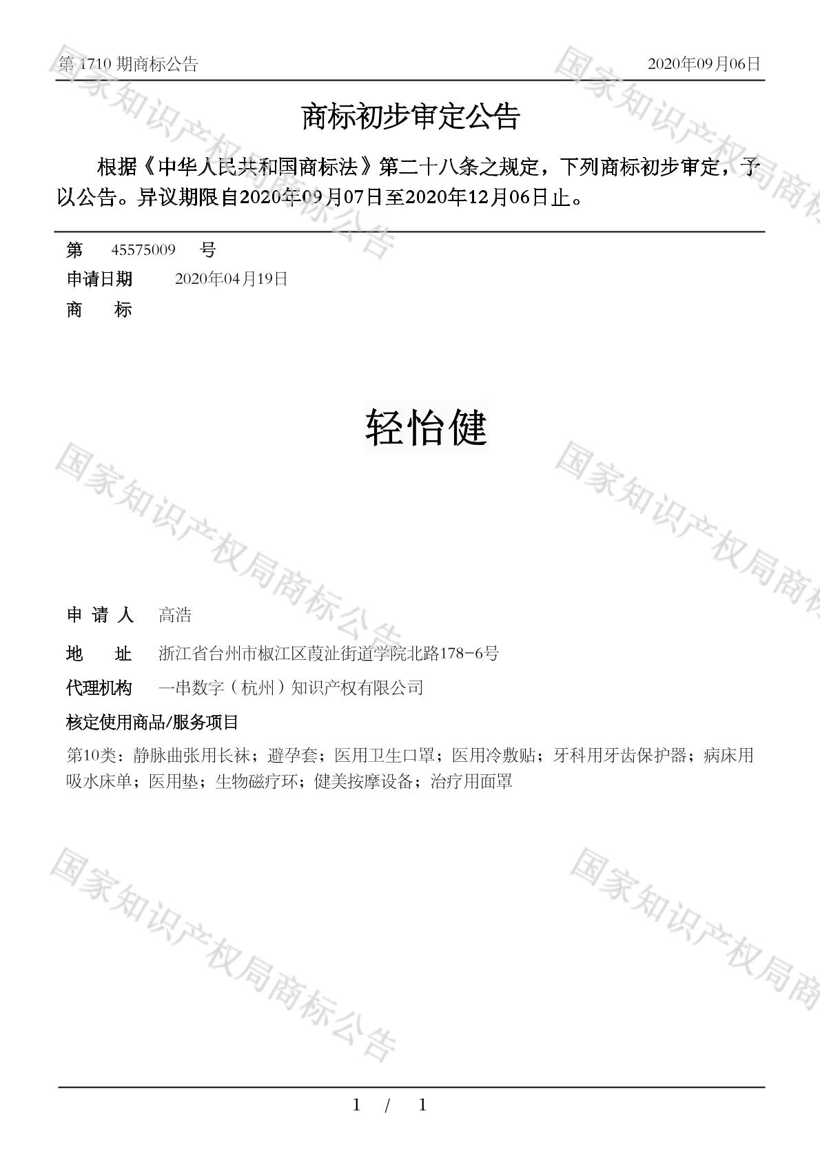 1001-健美按摩设备;1001-治疗用面罩;1002-牙科用牙齿保护器;1004-医用冷敷贴;1004-医用卫生口罩;1004-医用垫;1004-生物磁疗环;1004-病床用吸水床单;1006-避孕套;1008-静脉曲张用长袜 - 1710