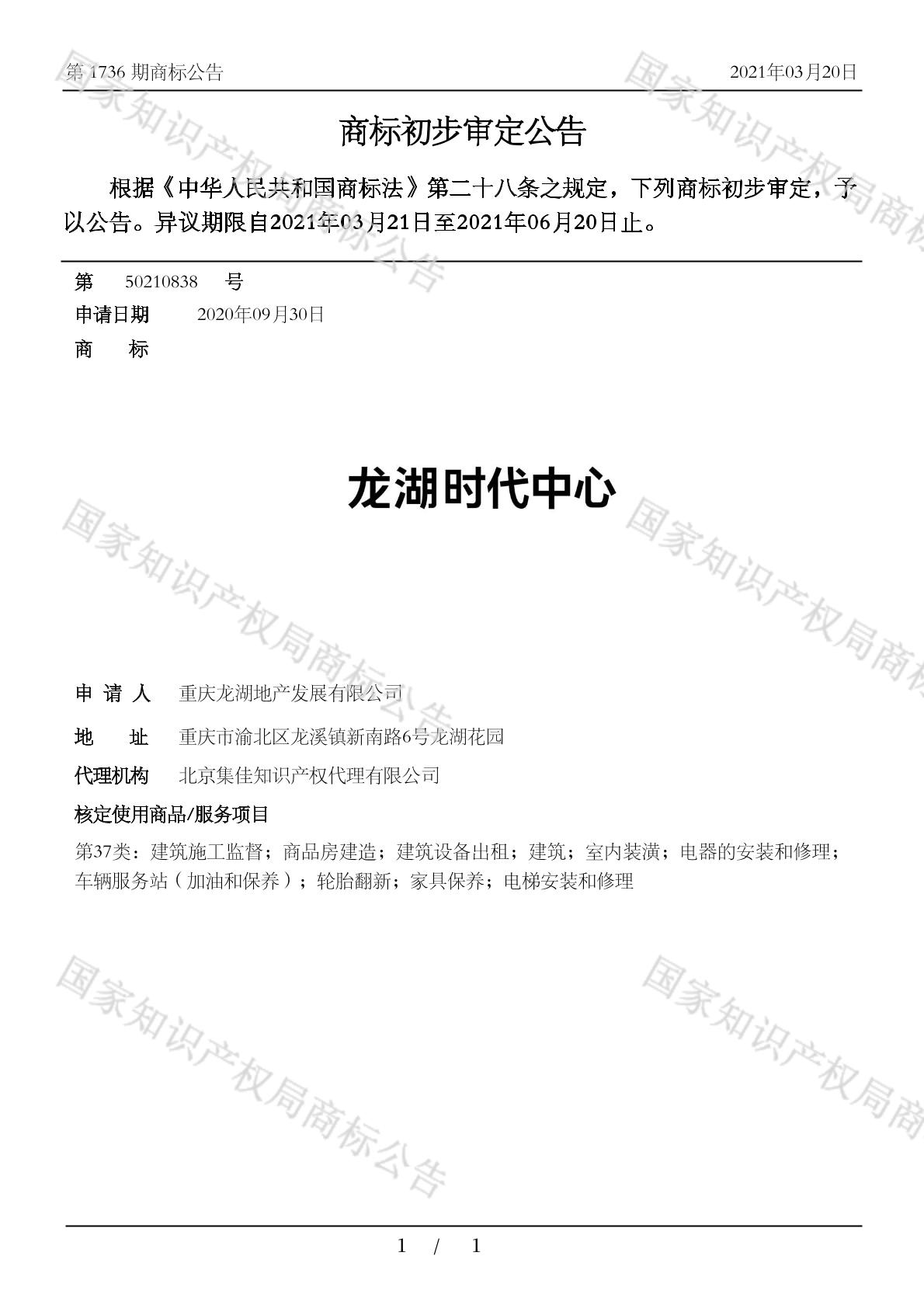 【龙湖时代中心】商标详情