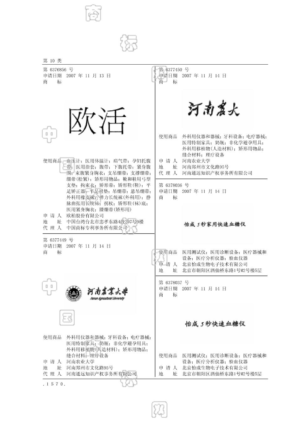 1001-外科用仪器和器械;1002-牙科设备;1003-理疗设备;1003-电疗器械;1004-医用特制家具;1005-奶瓶;1006-非化学避孕用具;1007-外科用移植物(人造材料);1008-矫形用物品;1009-缝合材料 - 1192