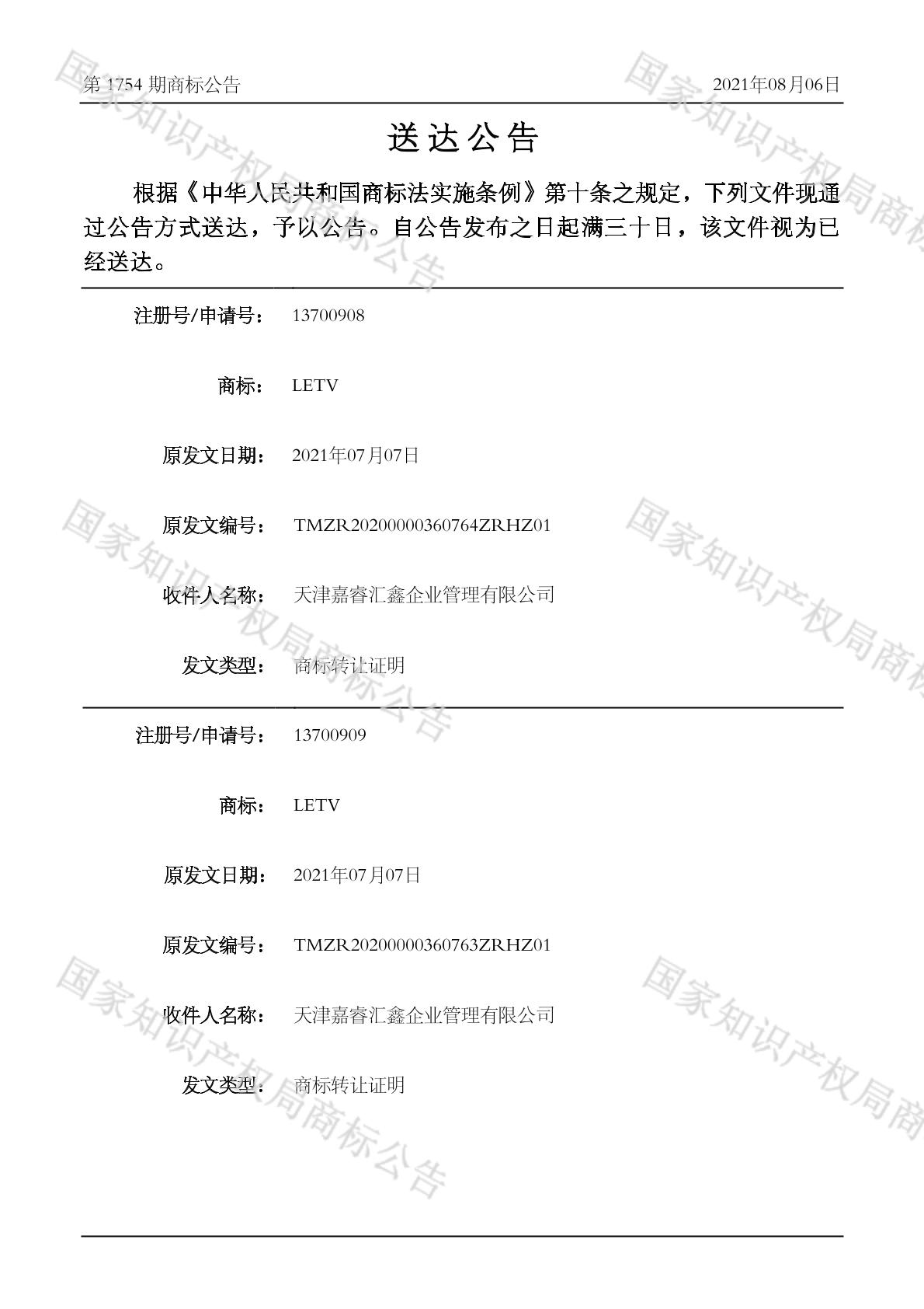 2021-07-07 商标转让 | 排版送达公告