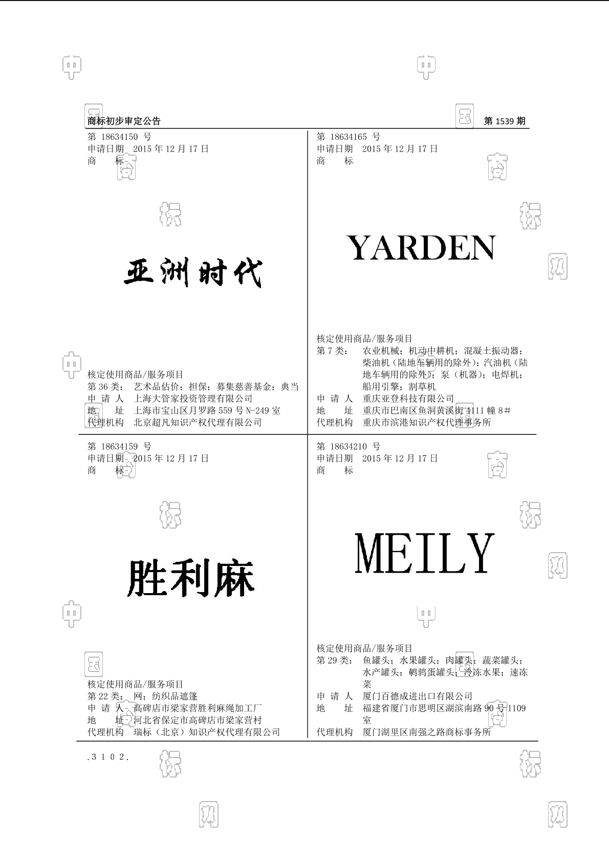 2016-05-16 商标注册申请 | 等待受理通知书发文