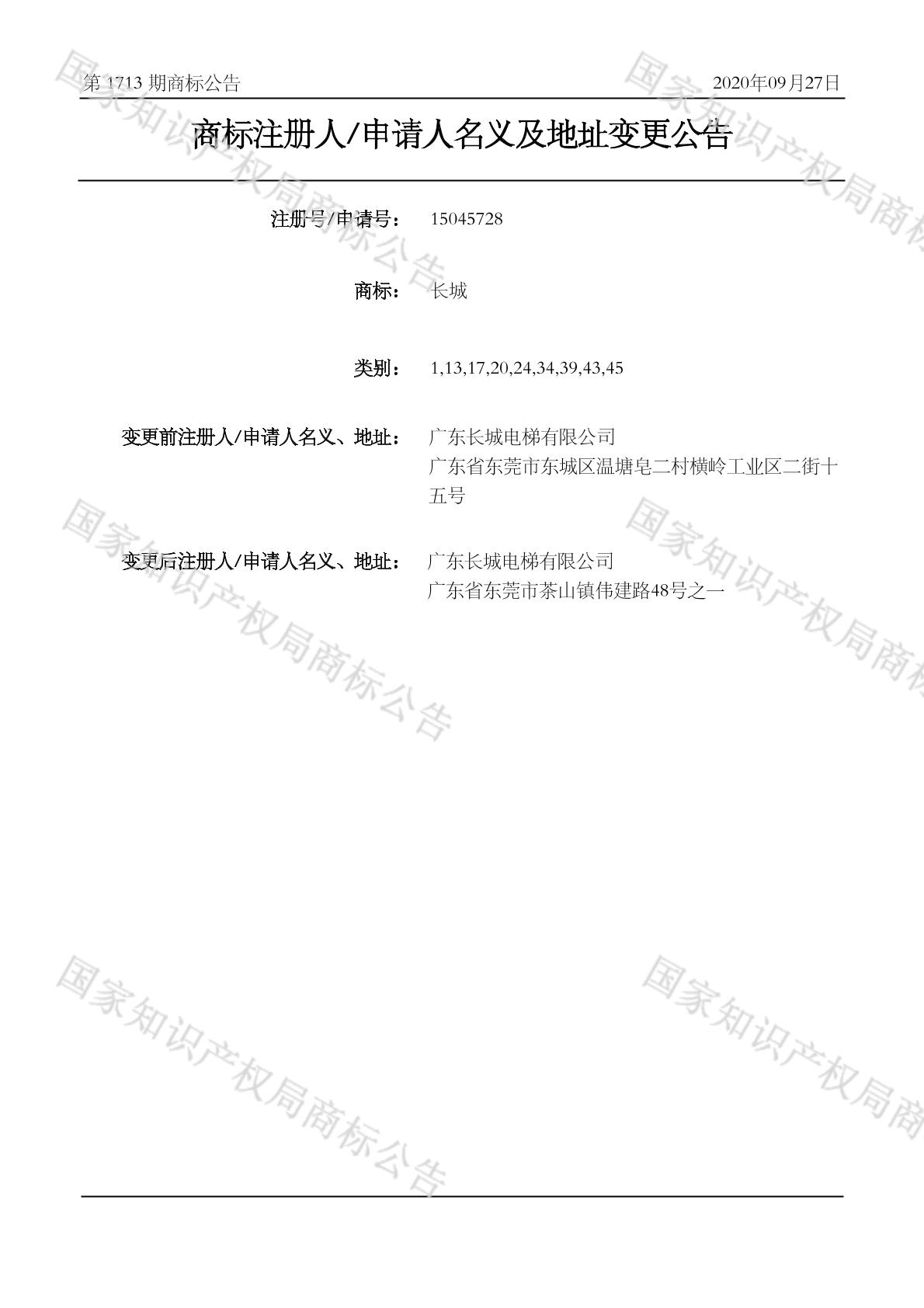2020-09-10 变更商标申请人/注册人名义/地址 | 核准证明打印发送