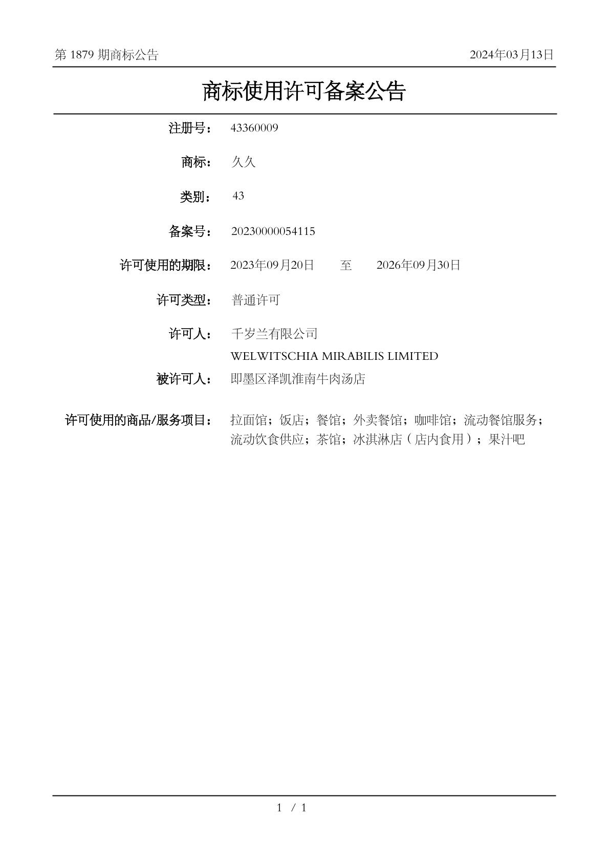 2024-03-09 商标使用许可备案 | 核准通知书打印发送