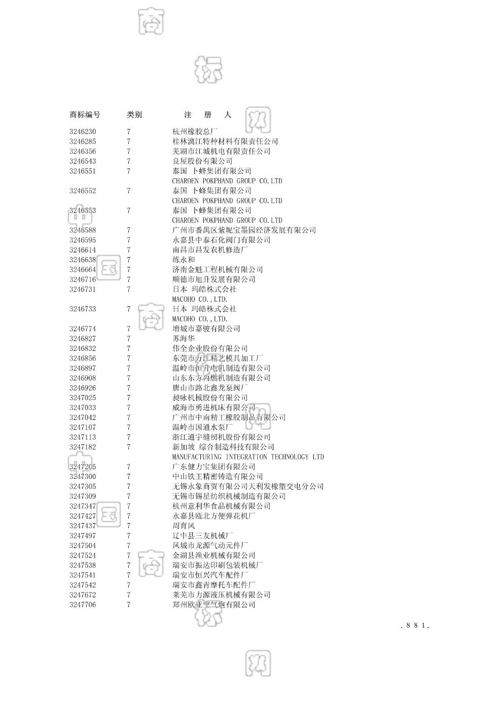 0706-纺织工业用机器;0712-皮革修整机;0713-便携式旋转蒸汽熨压机;0713-工业缝纫机台板;0713-撬边机;0713-熨衣机;0713-缝纫机;0713-锁扣机 - 910