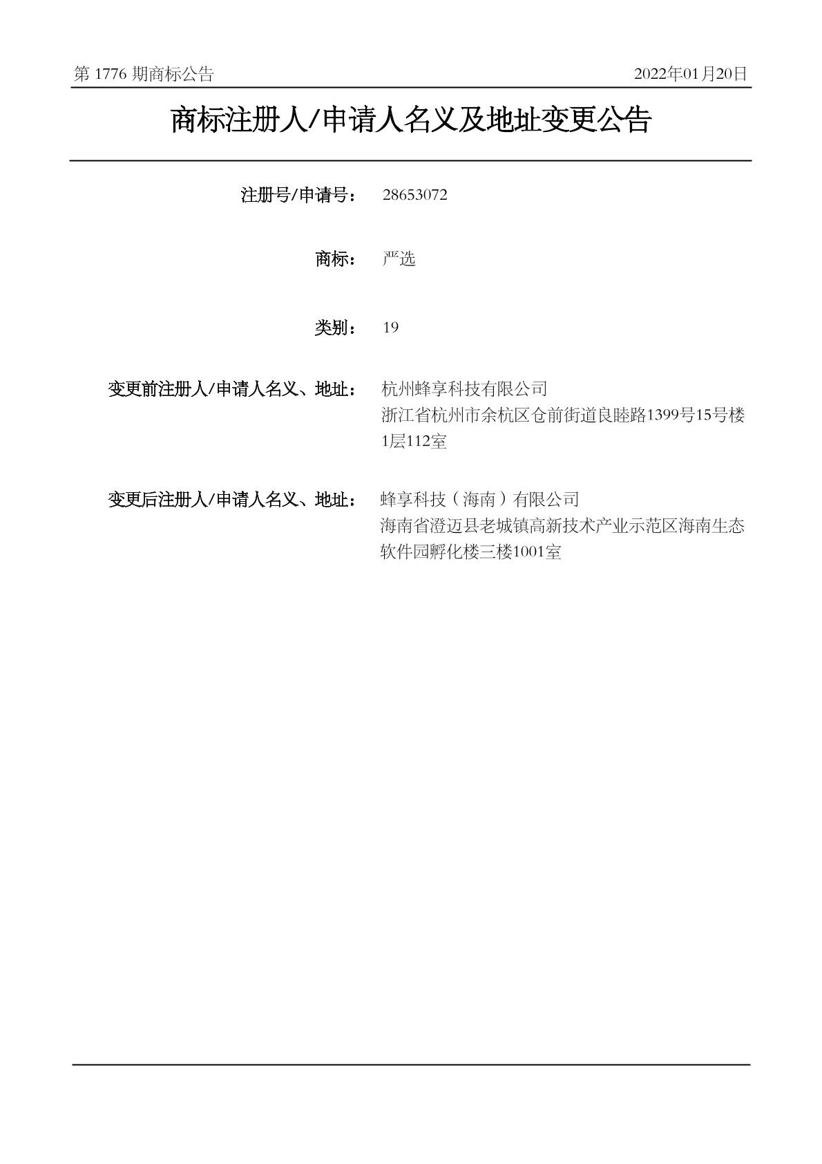 2022-01-14 变更商标申请人/注册人名义/地址 | 核准证明打印发送