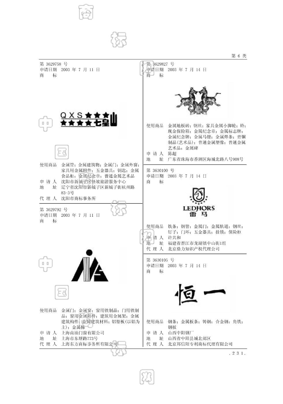 0603-金属地板砖;0605-钢丝;0608-家具金属小脚轮;0609-铃;0611-现金保险箱;0614-金属标志牌;0614-金属纪念牌;0614-金属纪念章;0615-金属马镫;0616-金属焊条;0622-普通金属塑像;0622-普通金属艺术品;0622-青铜制品(艺术品);0624-金属碑 - 951
