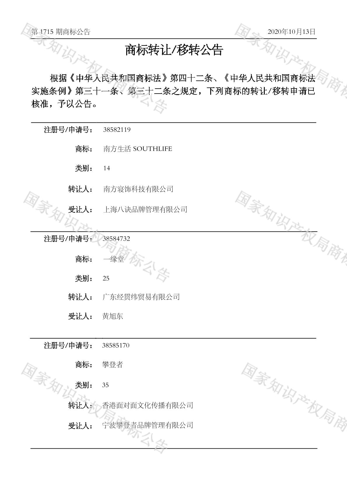 2020-10-15 商标转让 | 核准证明打印发送