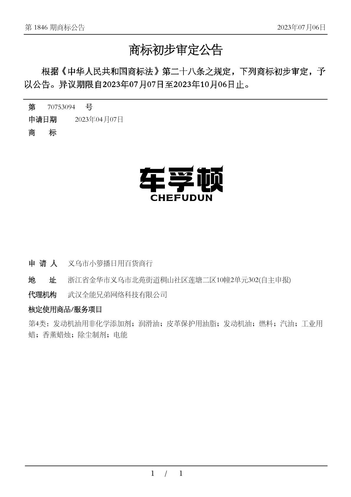 【车孚顿】商标详情