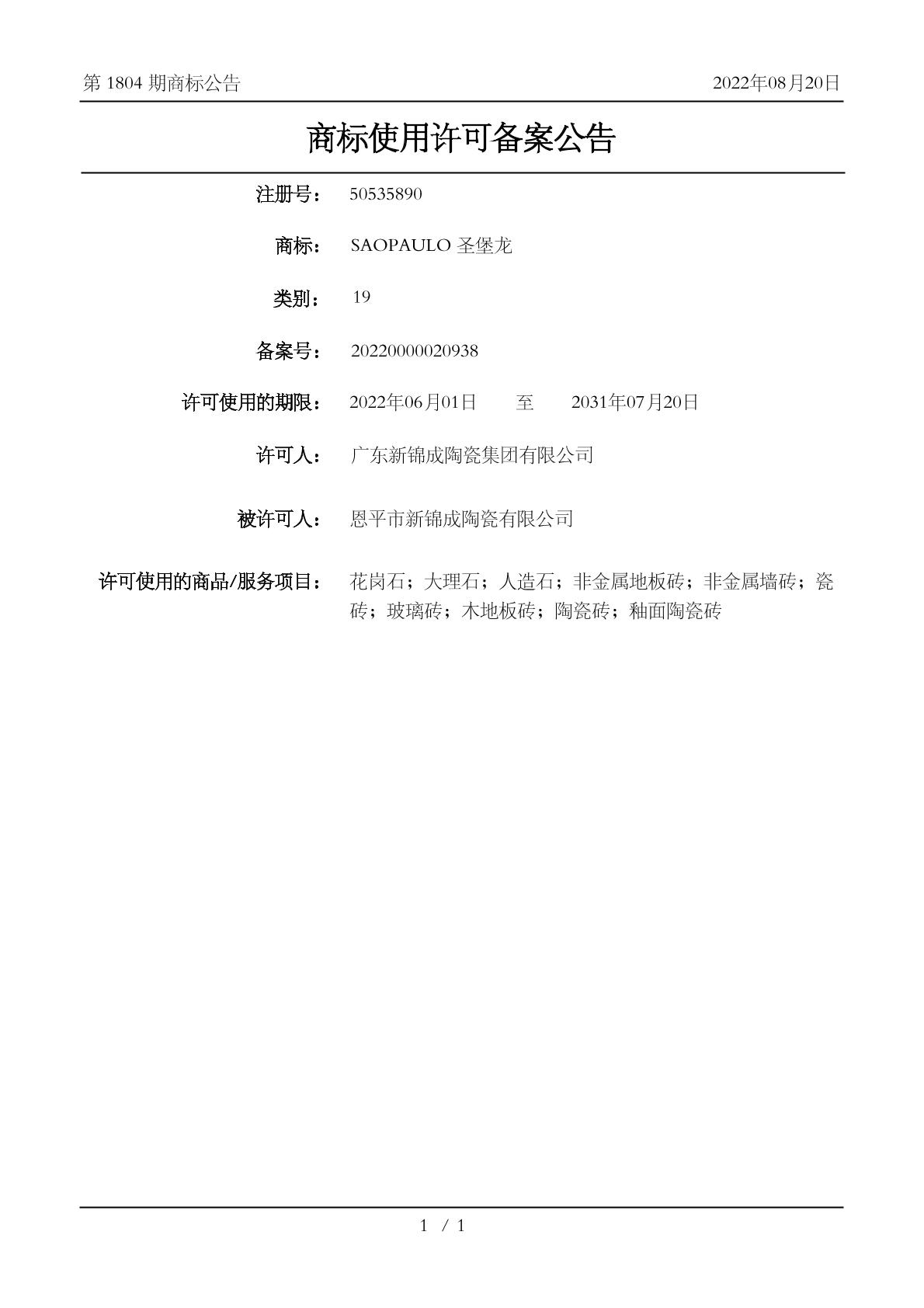 2022-06-28 商标使用许可备案 | 申请收文