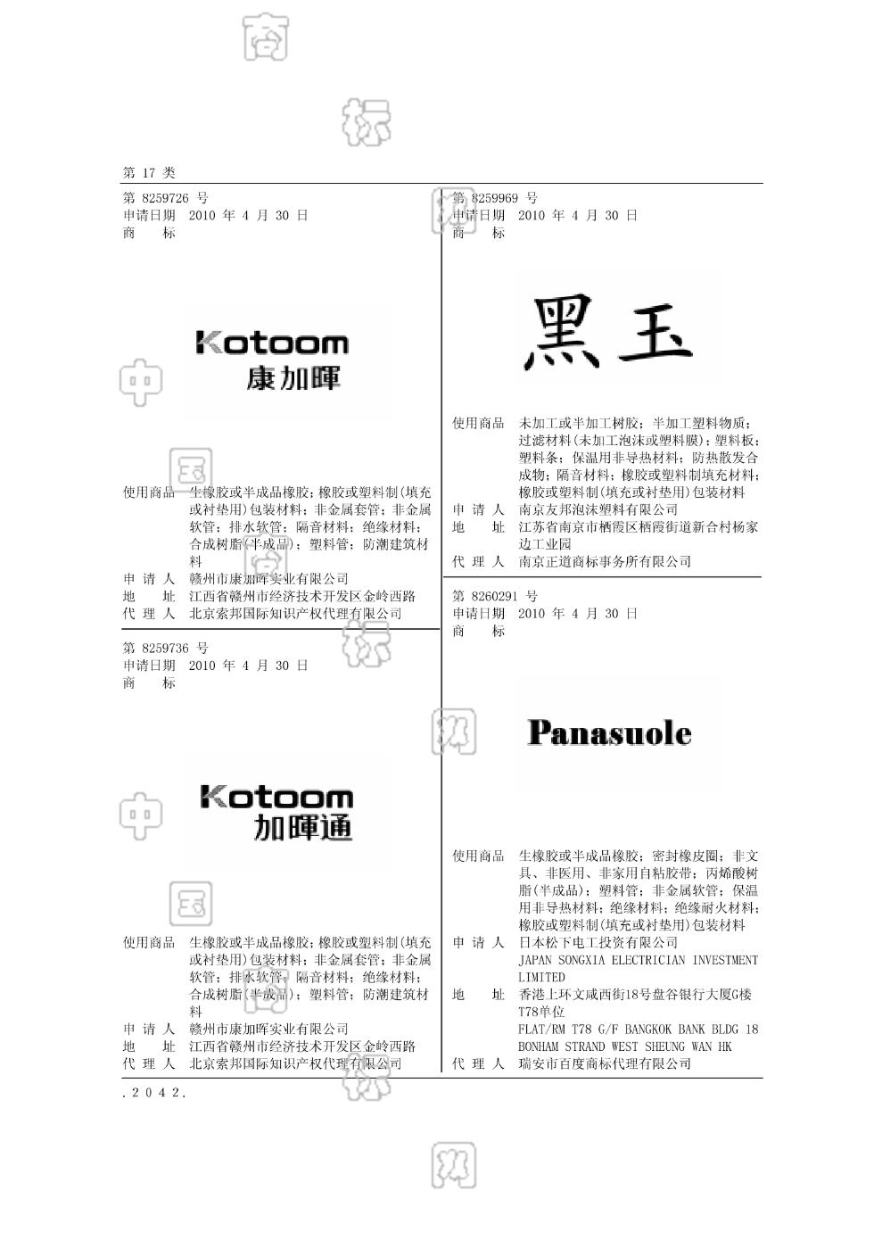 1701-生橡胶或半成品橡胶;1702-密封橡皮圈;1702-非文具、非医用、非家用自粘胶带;1703-丙烯酸树脂(半成品);1703-塑料管;1703-生橡胶或半成品橡胶;1704-非金属软管;1705-保温用非导热材料;1706-绝缘材料;1706-绝缘耐火材料;1707-橡胶或塑料制(填充或衬垫用)包装材料 - 1250