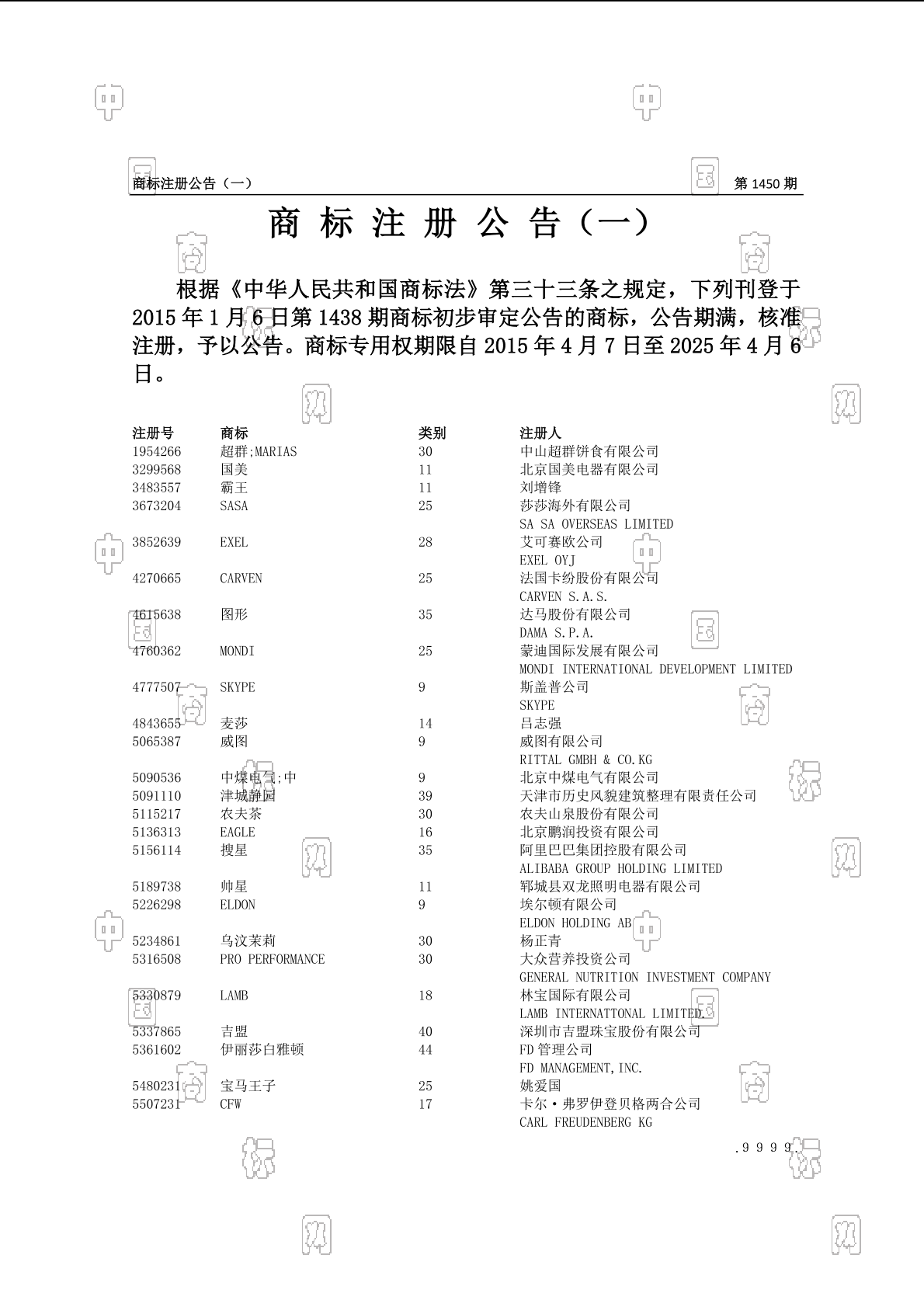 2015-04-08 商标注册申请 | 商标注册申请注册公告排版完成