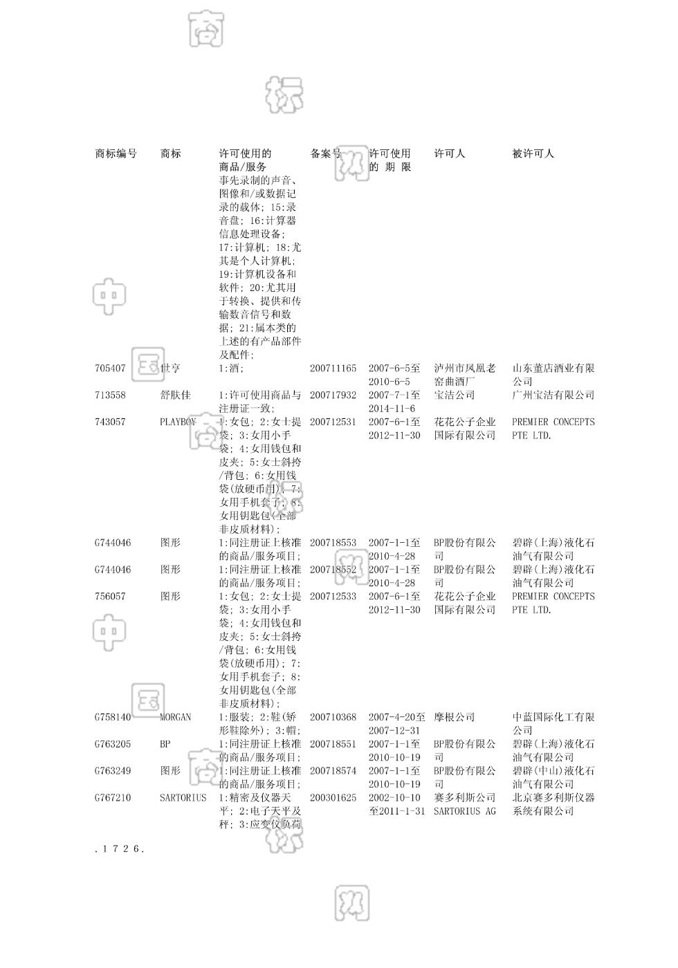 商标使用许可备案公告 2008-05-13 第1119期 查看公告
