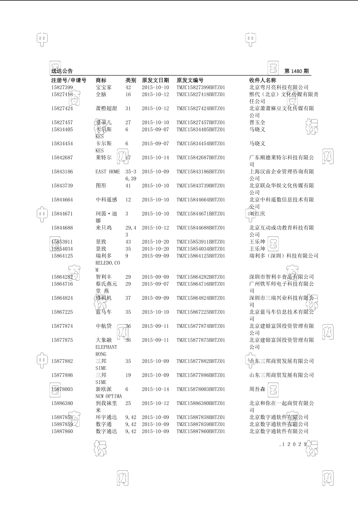 2015-09-10 商标注册申请 | 商标注册申请等待驳回通知发文
