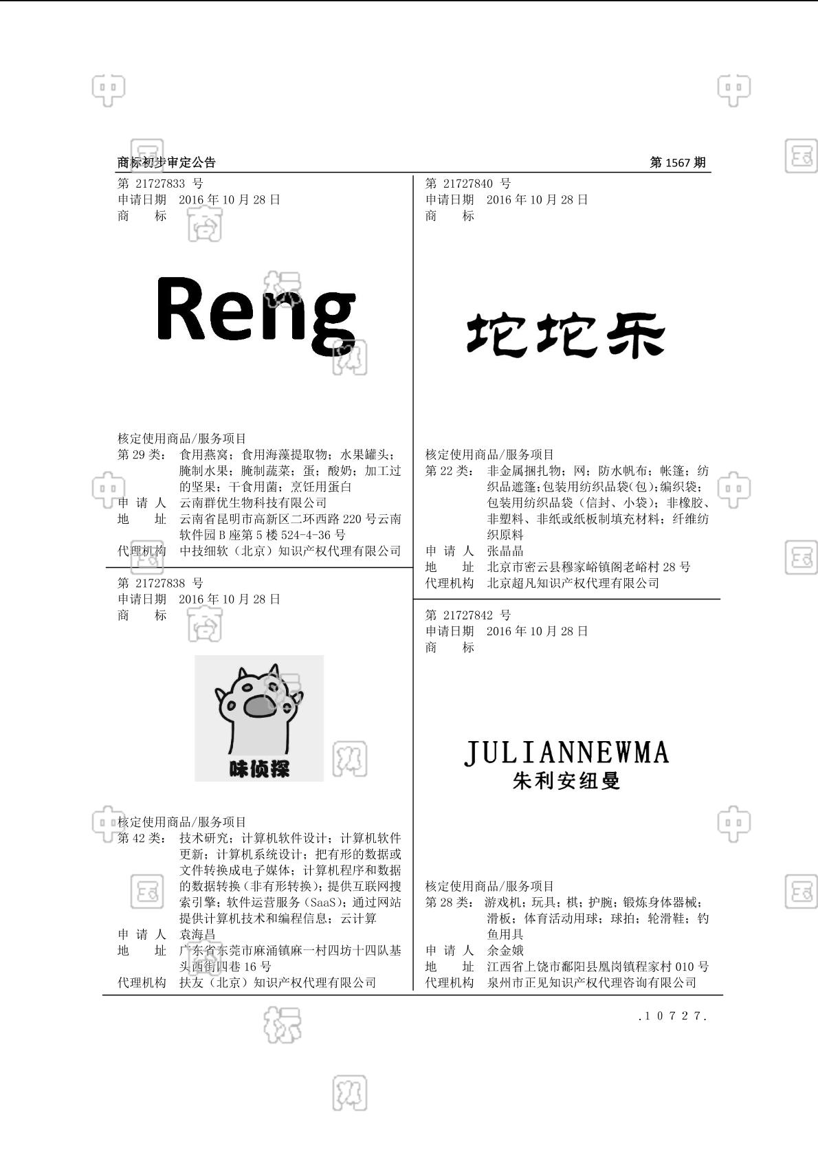 2016-11-30 商标注册申请 | 等待受理通知书发文
