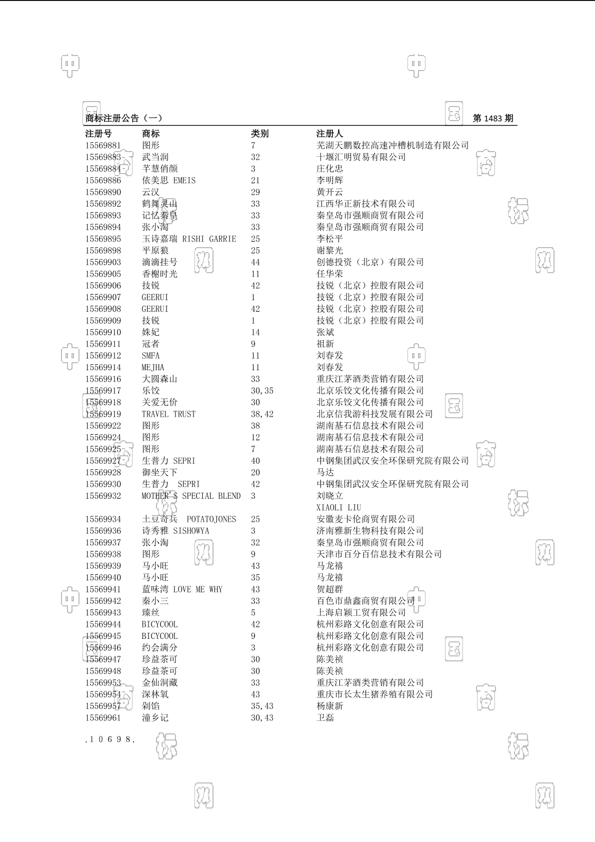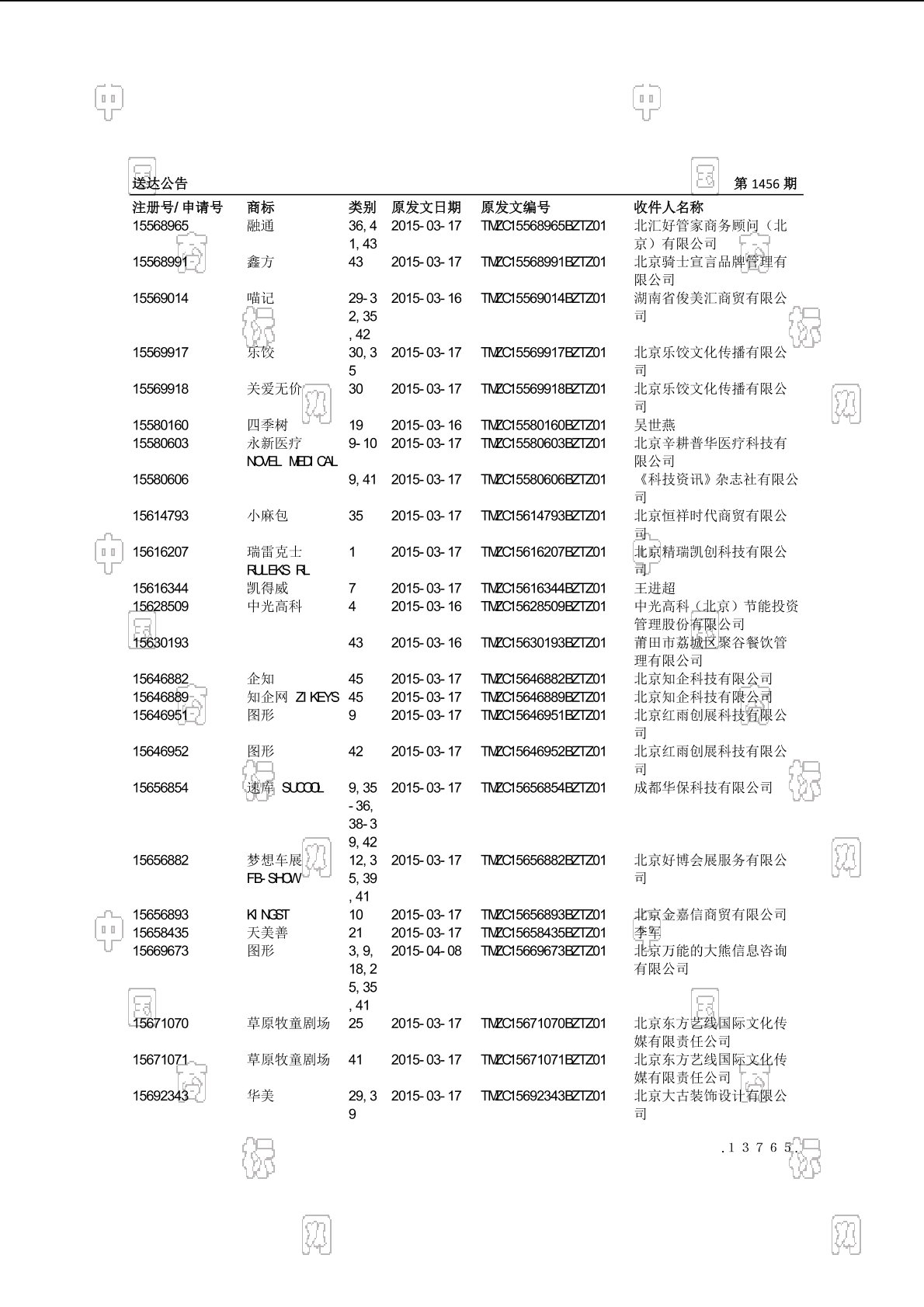 2015-12-15 商标注册申请 | 商标注册申请注册公告排版完成