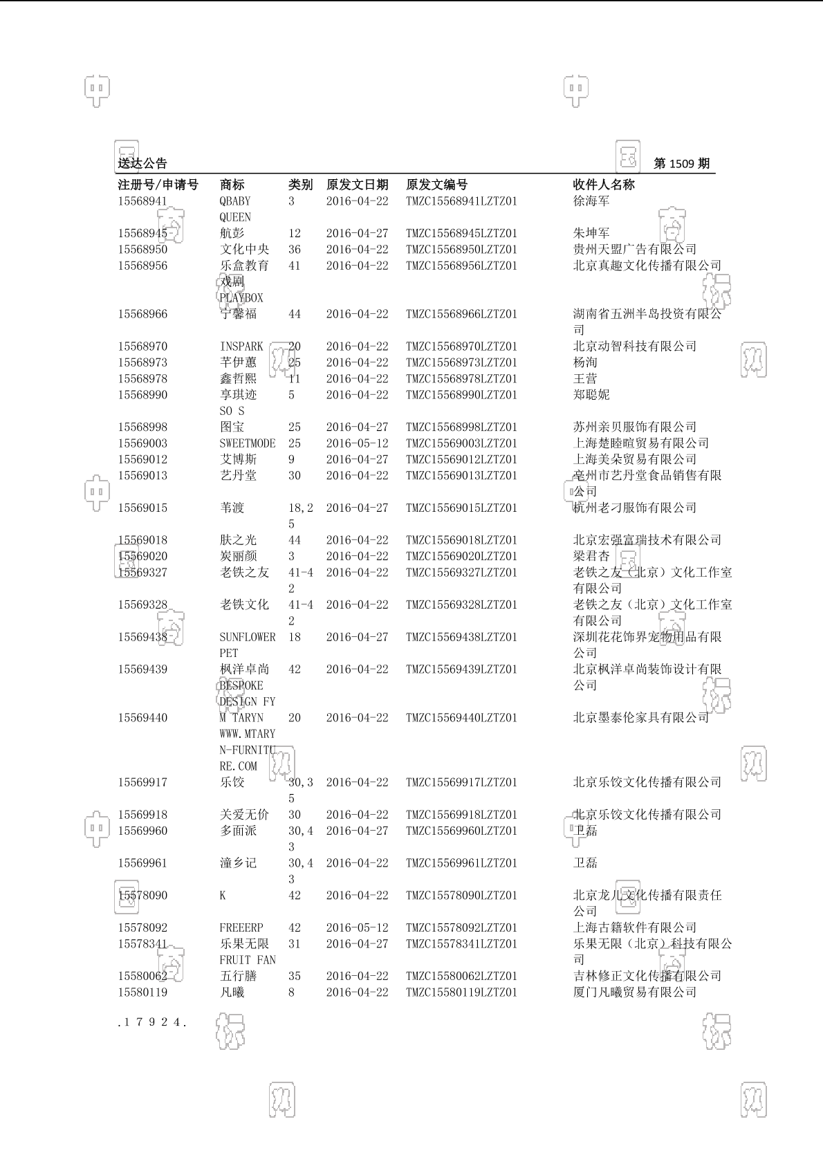 2016-06-23 商标注册申请 | 排版送达公告(领取商标注册证通知书)