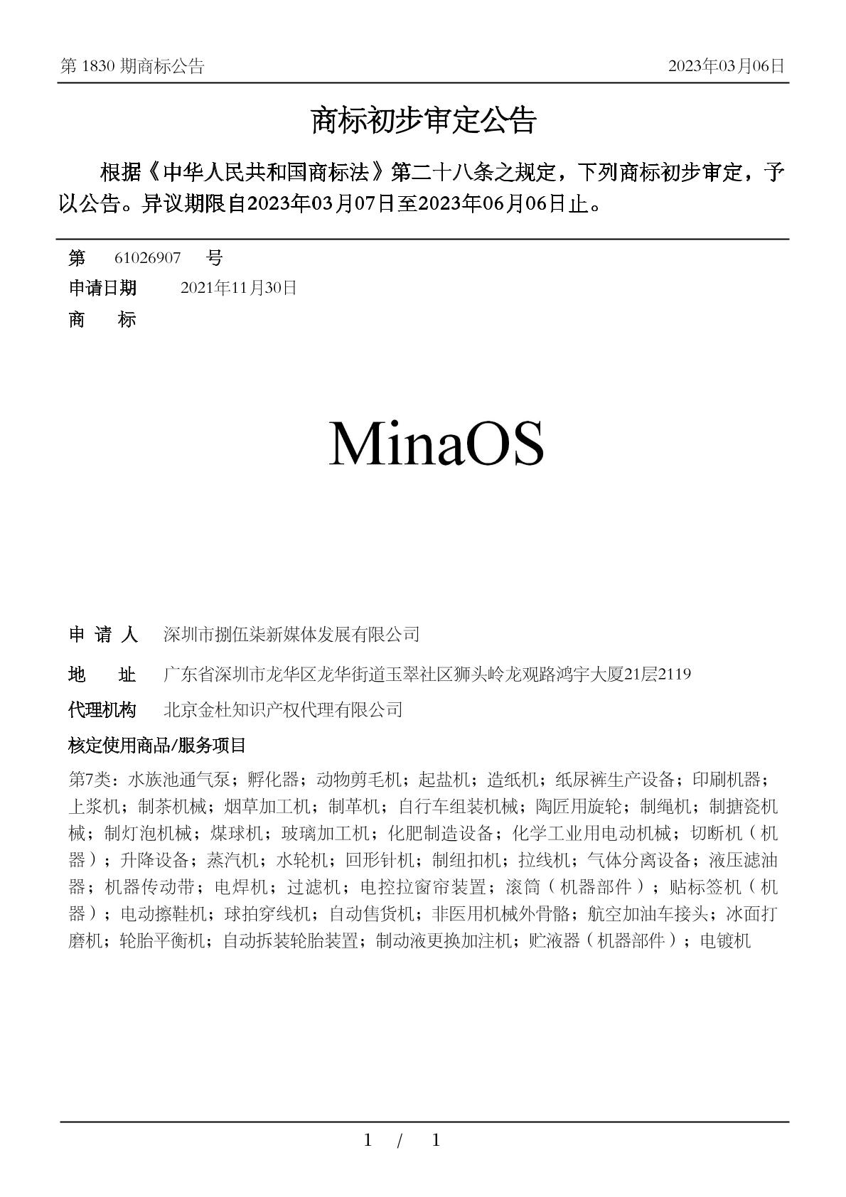 【MINAOS】商标详情